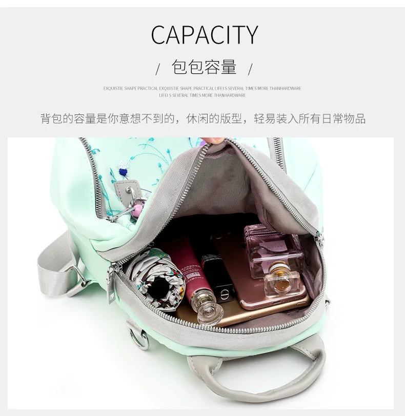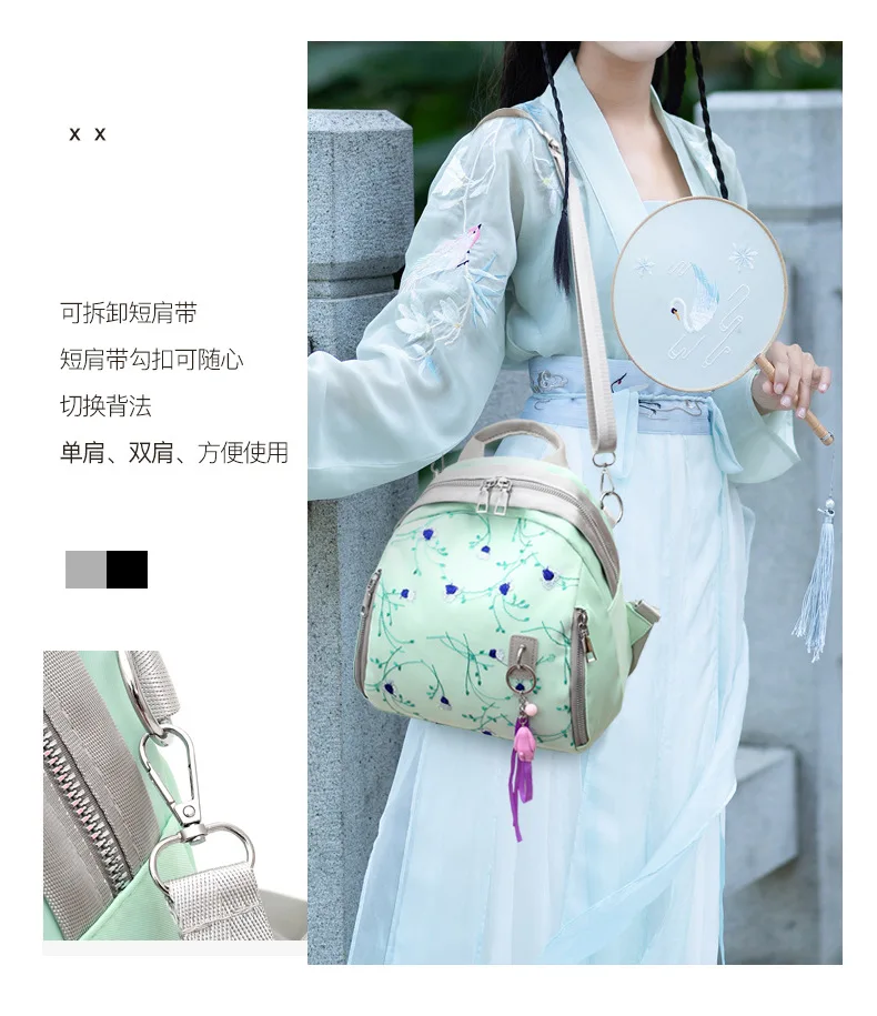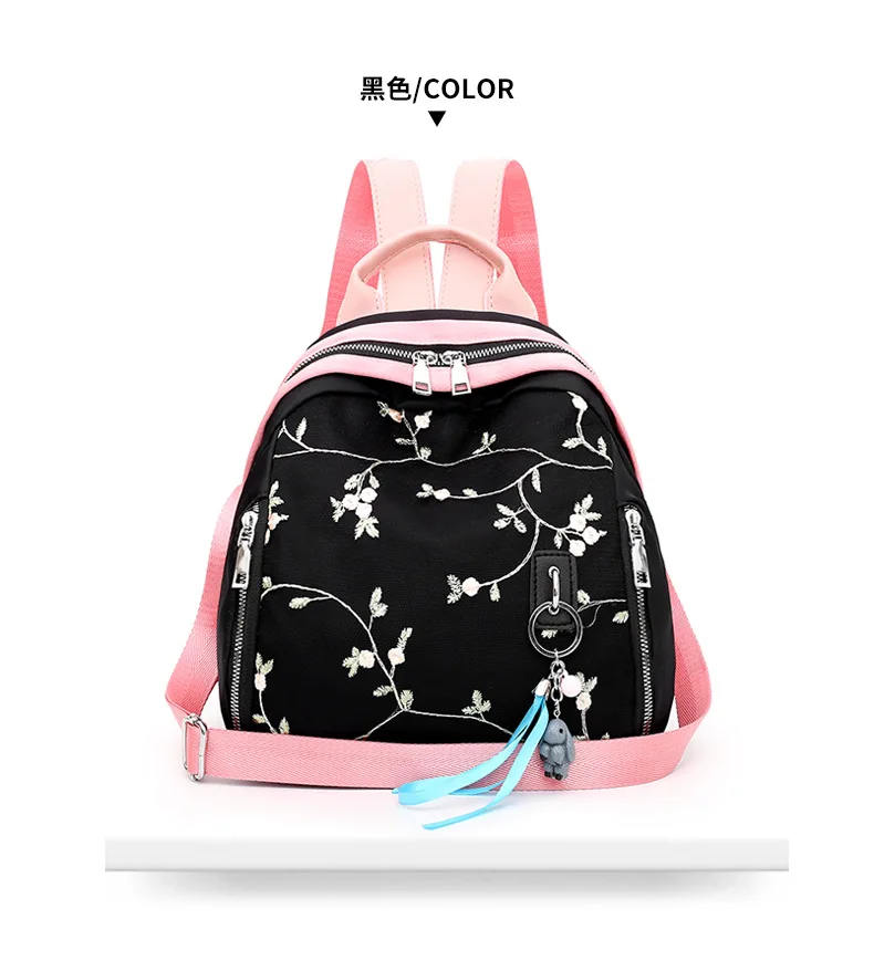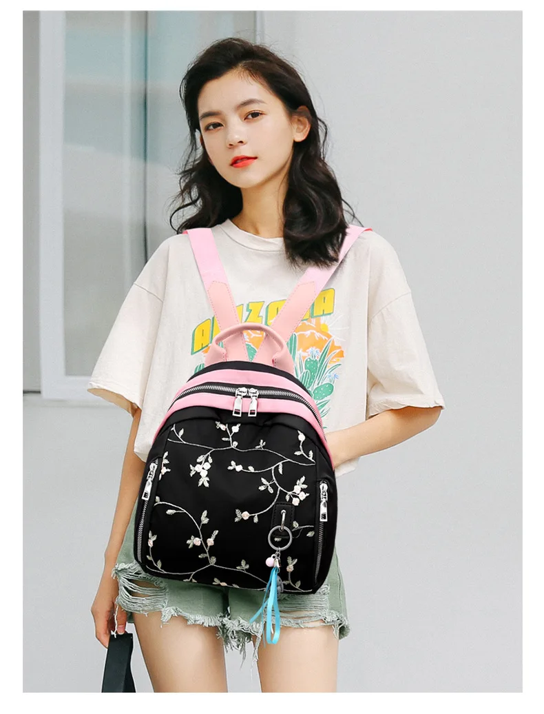 Мини-рюкзак с цветочной вышивкой, водонепроницаемый дорожный рюкзак, нейлоновые школьные сумки Mochila Feminina, нейлоновые сумки на плечо для девочек, Rugzak