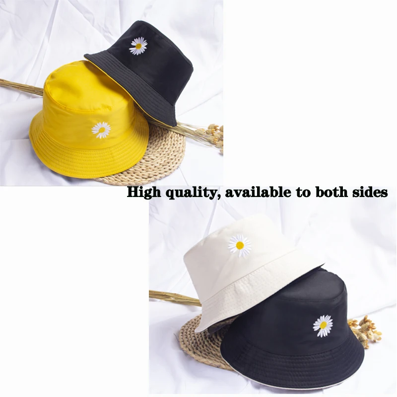 Casual Cute Pattern Bucket Hat Neutral Fashion Double-sided Small Daisy Fisherman Hat Outdoor Sunscreen Folding Hat Gender: Unisex Material: Cotton Item Type: Bucket Hats Style: Novelty Pattern Type: Solid Colors: As Shown Measure by hand, will be 2-3 cm deviations Due to the difference of lights, the picture may not reflect actual color of item Function: available on both sides