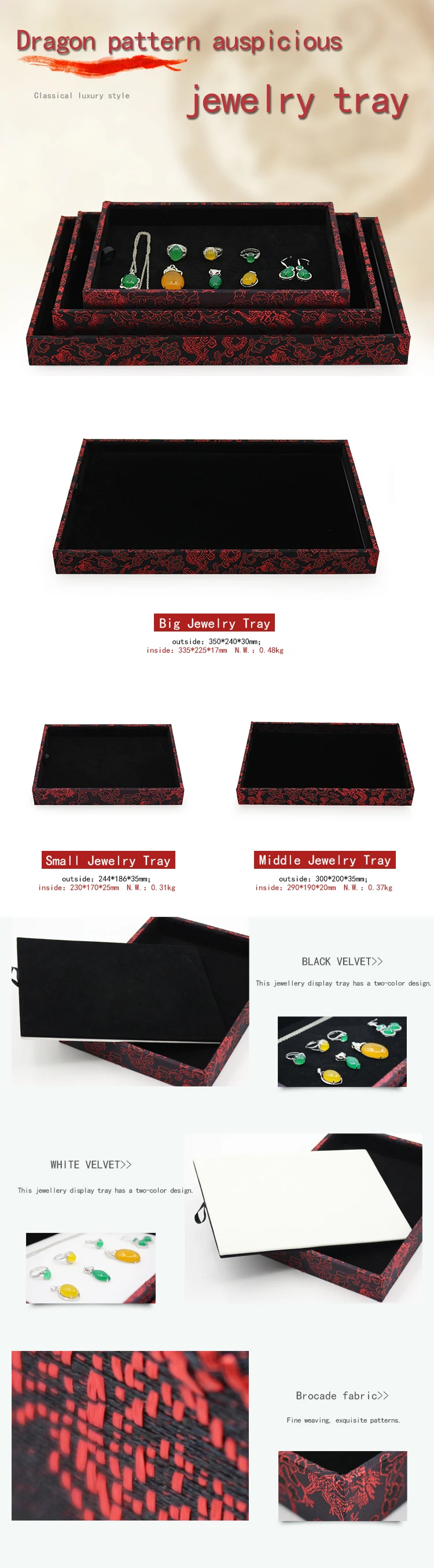 Низкая цена китайский стиль мода Oem кольцо серьги кулон ювелирные изделия бархат лоток