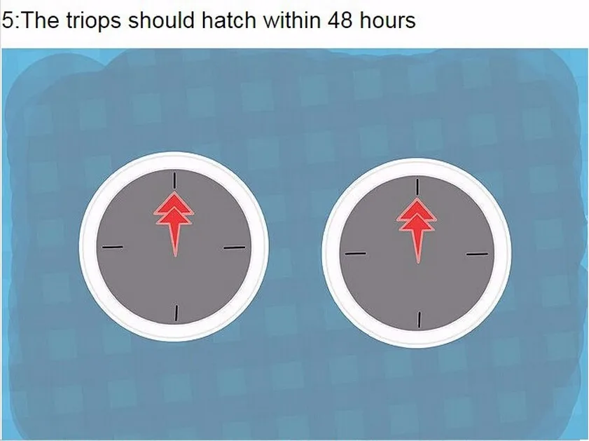 Пока ваши руки не химикаты. Триопс может желать есть больше, чем просто данная еда. Они также любят одиночный замороженный горох, кусочки кукурузы, небольшие кусочки салата и небольшие кубики моркови. Если вы думаете, что ваши триопсы отложили яйца и вы хотите вылупить второе поколение, то подождите, пока все Ваши первые триопсы не умерли. Затем возьмите сито и выпустите всю воду из резервуара. Затем подождите, пока песок на дне полностью высохнет, и добавьте в резервуар свежую дистиллированную воду (температура должна быть подходящей. 22-30 градусов) и так же, как и ваши предыдущие триопсы, оставьте на своей лампе, и они должны вылупиться! На ночь вам может понадобиться оставить лампу включенной на всю ночь, особенно если она холодная или у вас включен кондиционер. Возможно, вы захотите покрыть небольшую часть вашего резервуара алюминиевой фольгой, потому что это делает теневую зону отдыха для ваших триопсов. В одиннадцатый день вы можете добавить немного песка на дно резервуара, так как это увеличивает вероятность того, что ваши триопсы отложат яйца. При первой очистке резервуара добавьте больше воды, чтобы резервуар теперь вмещал около 3 литров воды.