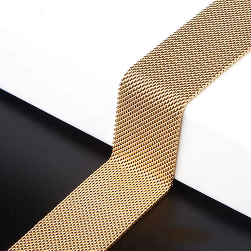 Features: Compatible models: suitable for Apple Watch 38mm / 42mm / 40mm / 42mm Material: Stainless steel Color: black/silver/retro gold/rose gold Stainless steel mesh adjustable Milan ring 42mm / 44mm (male) Length: 255mm, width: 23mm 38mm / 40mm (female) Length: 225mm, width: 20mm A modern interpretation of the design developed in Milan at the end of the 19th century. It is woven on a dedicated Italian machine, and a smooth stainless steel mesh is smoothly wrapped around the wrist. And because it is completely magnetic, the Milanese ring is infinitely adjustable, thus forming a perfect fit. Description: Rose gold bracelet suit: rose gold apple watch Vintage gold bracelet suit: Golden Apple Watch Specifications: Material:steel Package Included: 1*Strap
