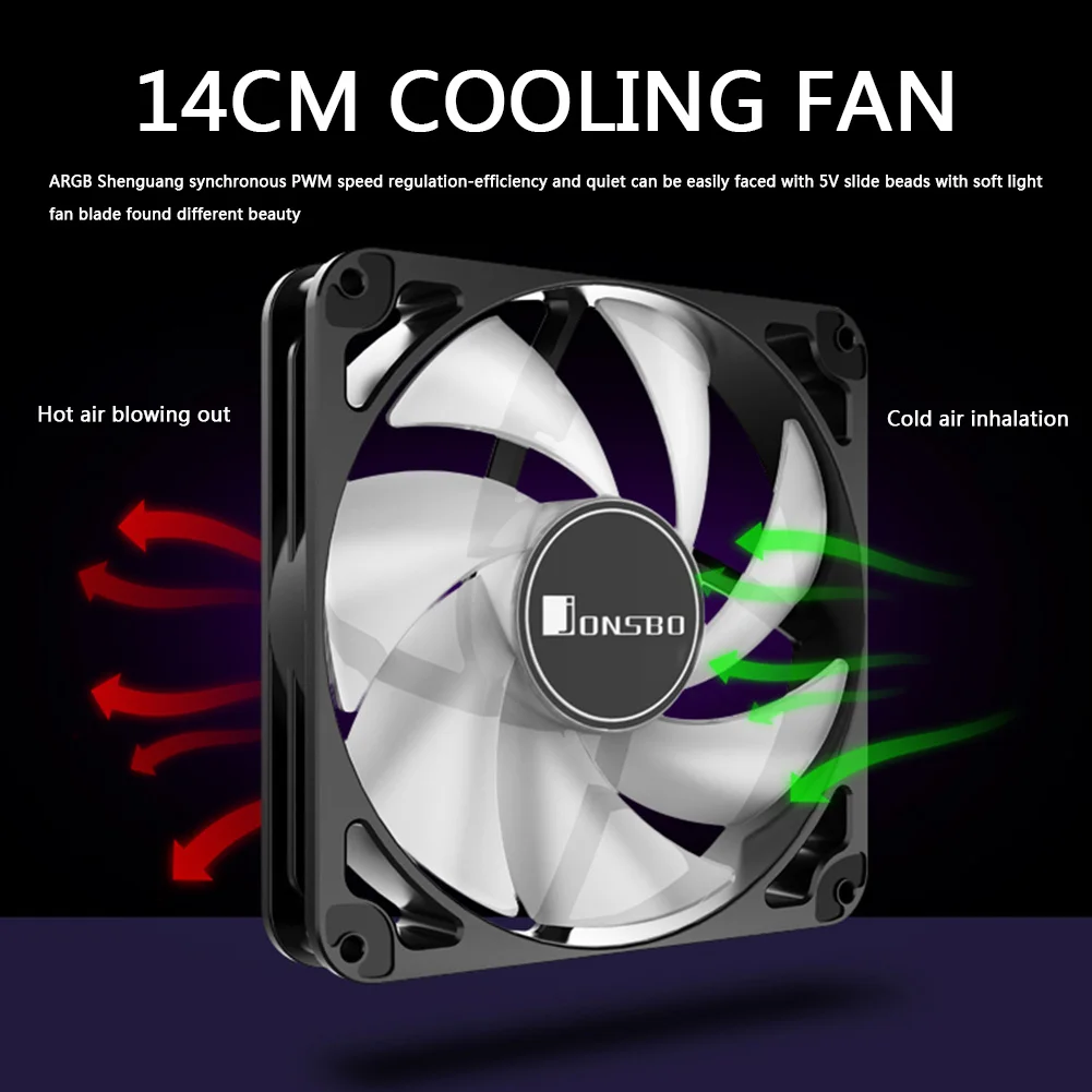JONSBO FR140S 14 см чехол для компьютера Вентилятор охлаждения 5V 3 Pin ARGB 4 Pin ШИМ великолепный тихий ПК Шасси кулер радиатор
