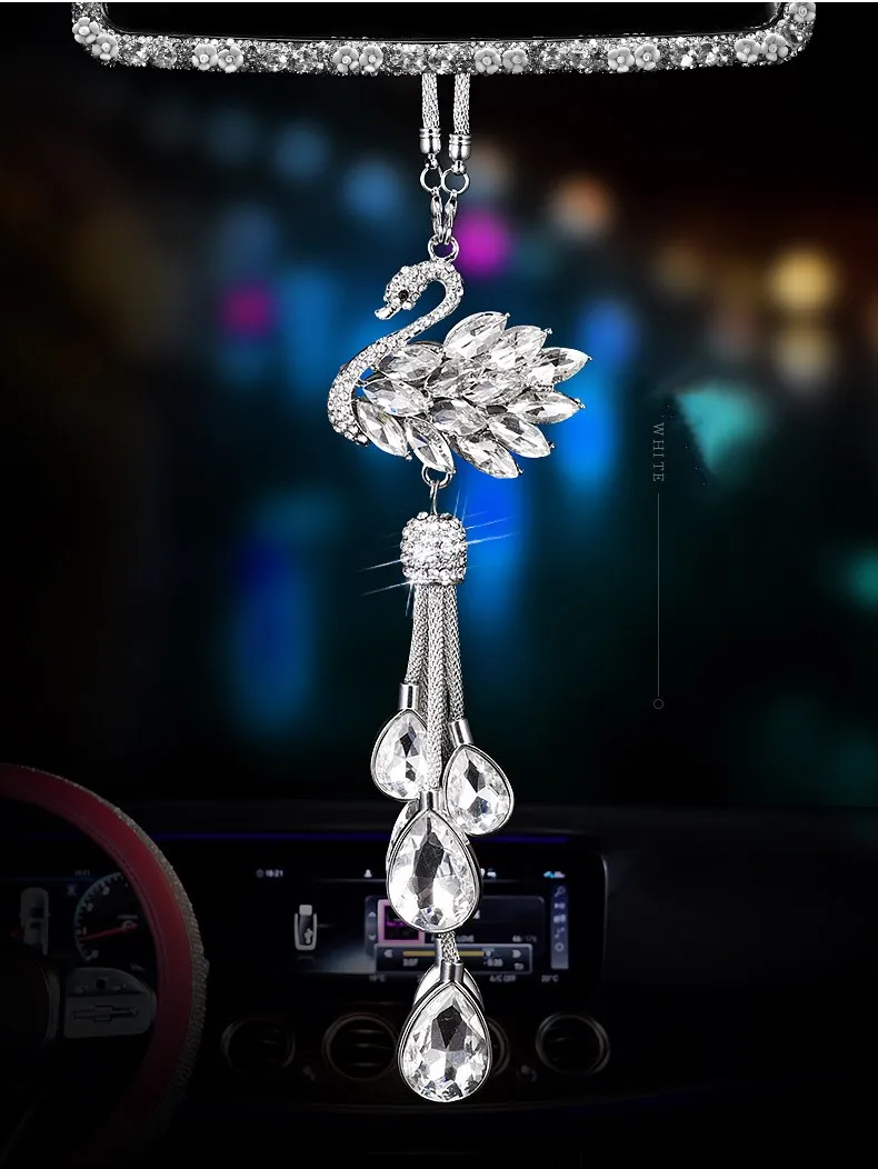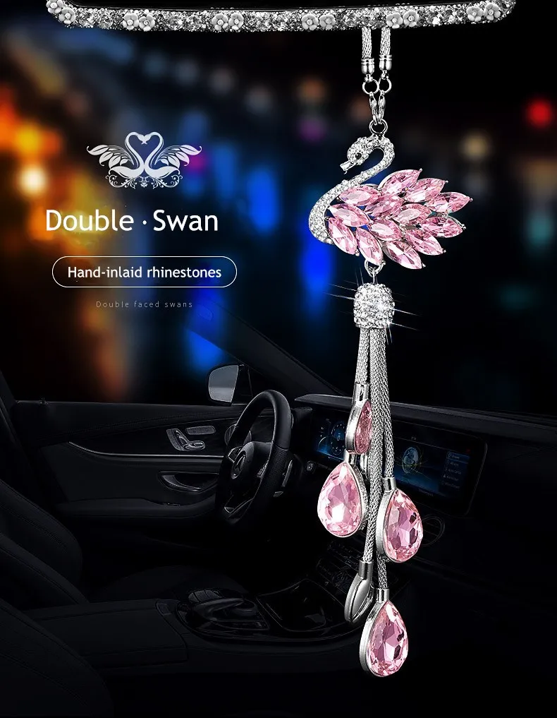 Автомобильный кулон, двухсторонний Хрустальный Лебедь, креативный корейский милый кулон для украшения интерьера автомобиля, подвеска для зеркала заднего вида автомобиля