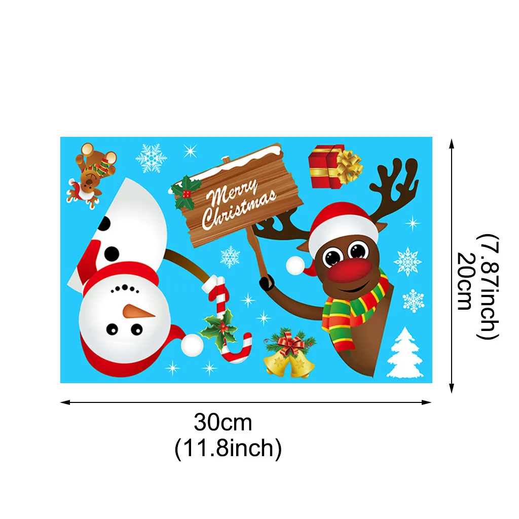 Merry Christmas Wall Stickers Decoration for Home New Year Gift Windows Santa Claus Elk Glass Sticker Decor | Дом и сад