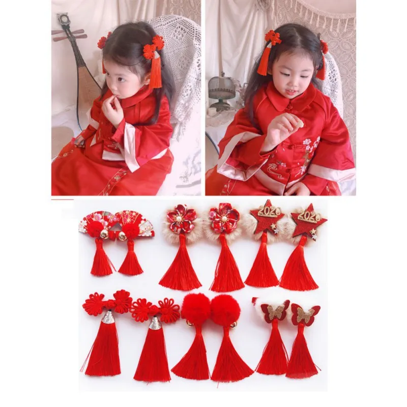 Детская заколка для волос с бантом для девочек, заколки для волос в китайском стиле, традиционная принцесса, кисточки, цветок пиона, шпильки для детских волос, аксессуары