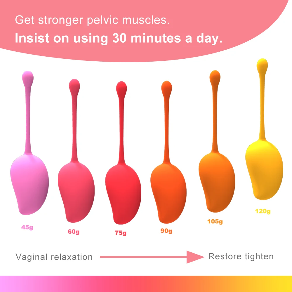Первый этап: Положите шарик 45 г во влагалище, тренируйтесь в течение 30 минут в день. Цикл 15-20 дней. Второй этап: Положите шарик 60 г во влагалище, делайте упражнения в течение 30 минут в день, цикл 15-20 дней. Третий этап: Положите шарик 75 г во влагалище, тренируйтесь в течение 30 минут в день, цикл 15-20 дней. Четвертый этап: Поставьте мяч 90 г в вигину, делайте упражнения в течение 30 минут в день, цикл 15-20 дней. Пятая стадия: Поставьте мяч 105 г в вигину, делайте упражнения в течение 30 минут в день, цикл 15-20 дней. Шестая Стадия: Положите шарик 120 г во влагалище, тренируйтесь в течение 30 минут в день, цикл 15-20 дней.