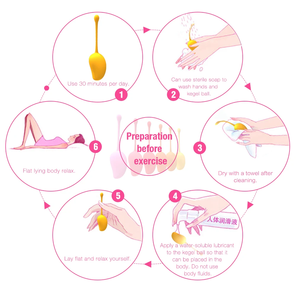 1. Очистите шарики теплой водой и мылом, температура не может быть более 75 градусов по Цельсию. 2. Мы предлагаем вам использовать шар с смазкой. 3. Перед купанием необходимо снять мяч. 4. После установки мяча в вигину, вы можете достичь эффекта при ходьбе и стоянии. 5. Уделите время и стойкость, Настаивайте на использовании шариков, затем вы можете увидеть изменение влагалища через 4 месяца. 6. После использования мяча, вы должны очистить его и хранить в сухом состоянии