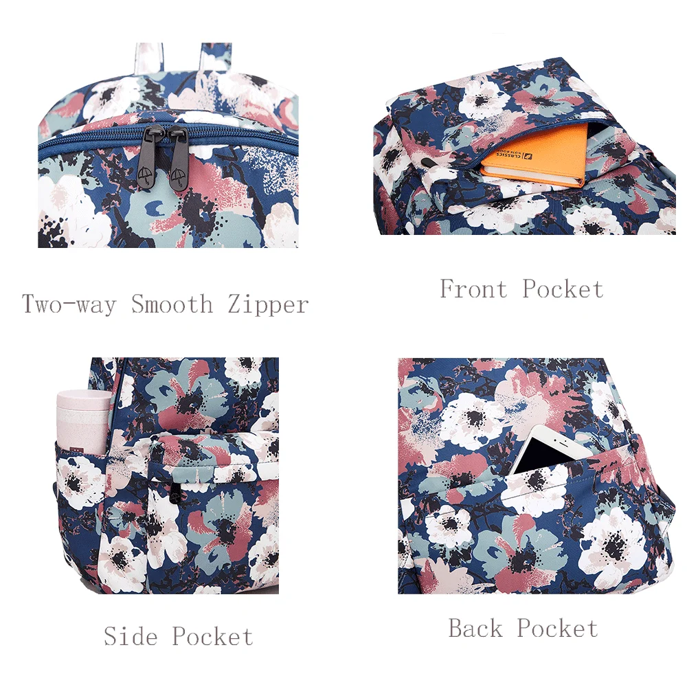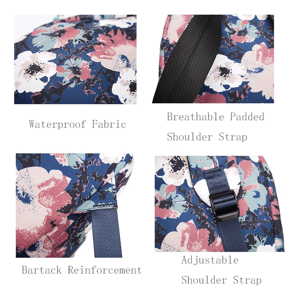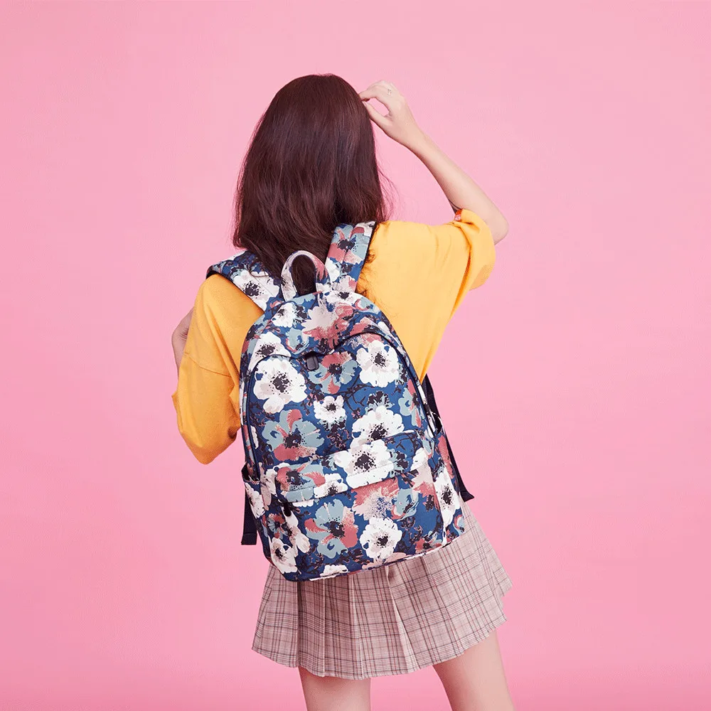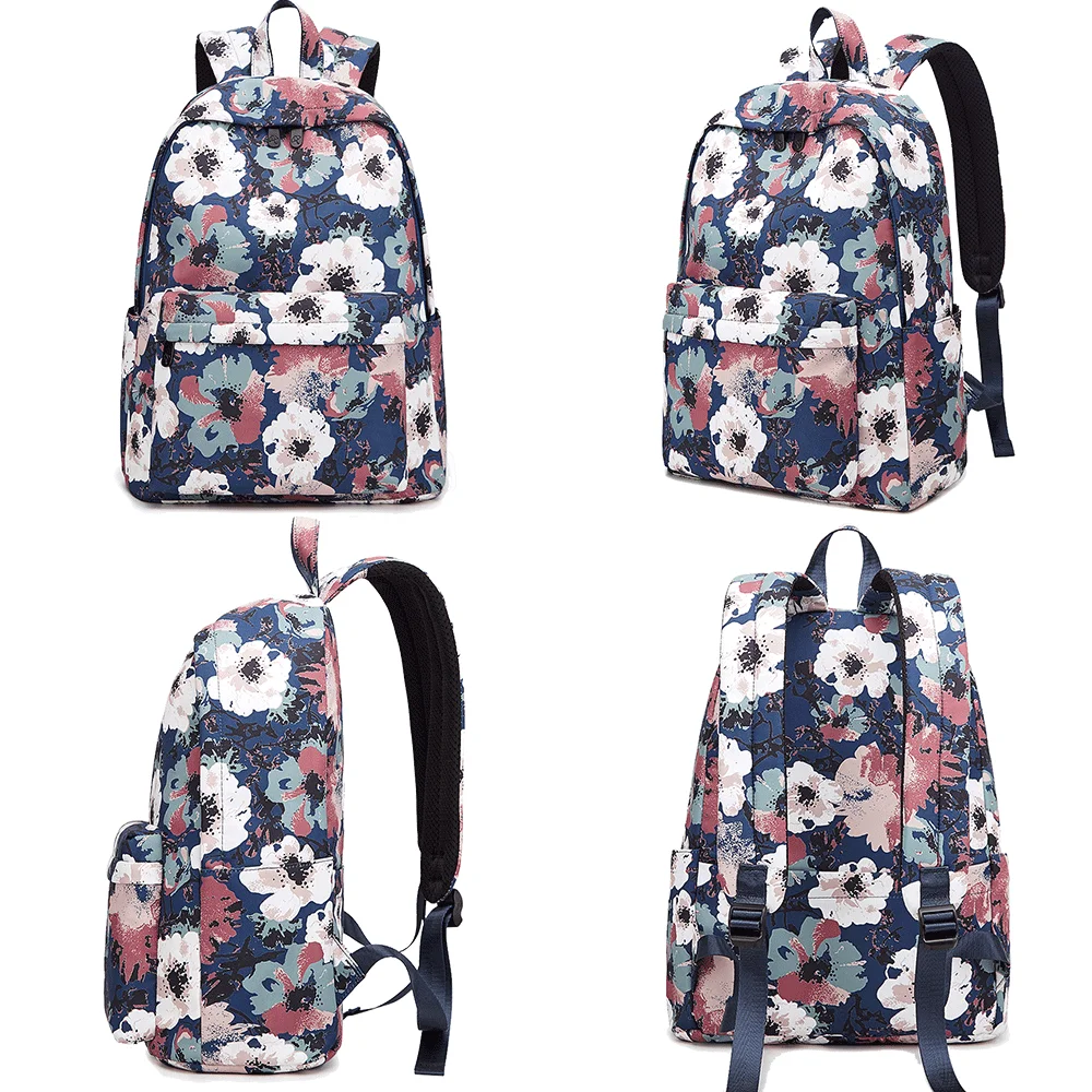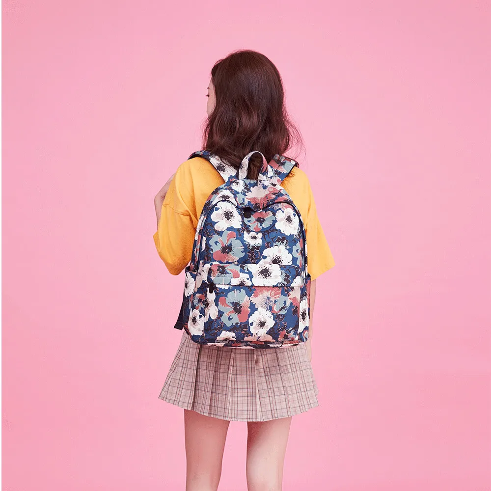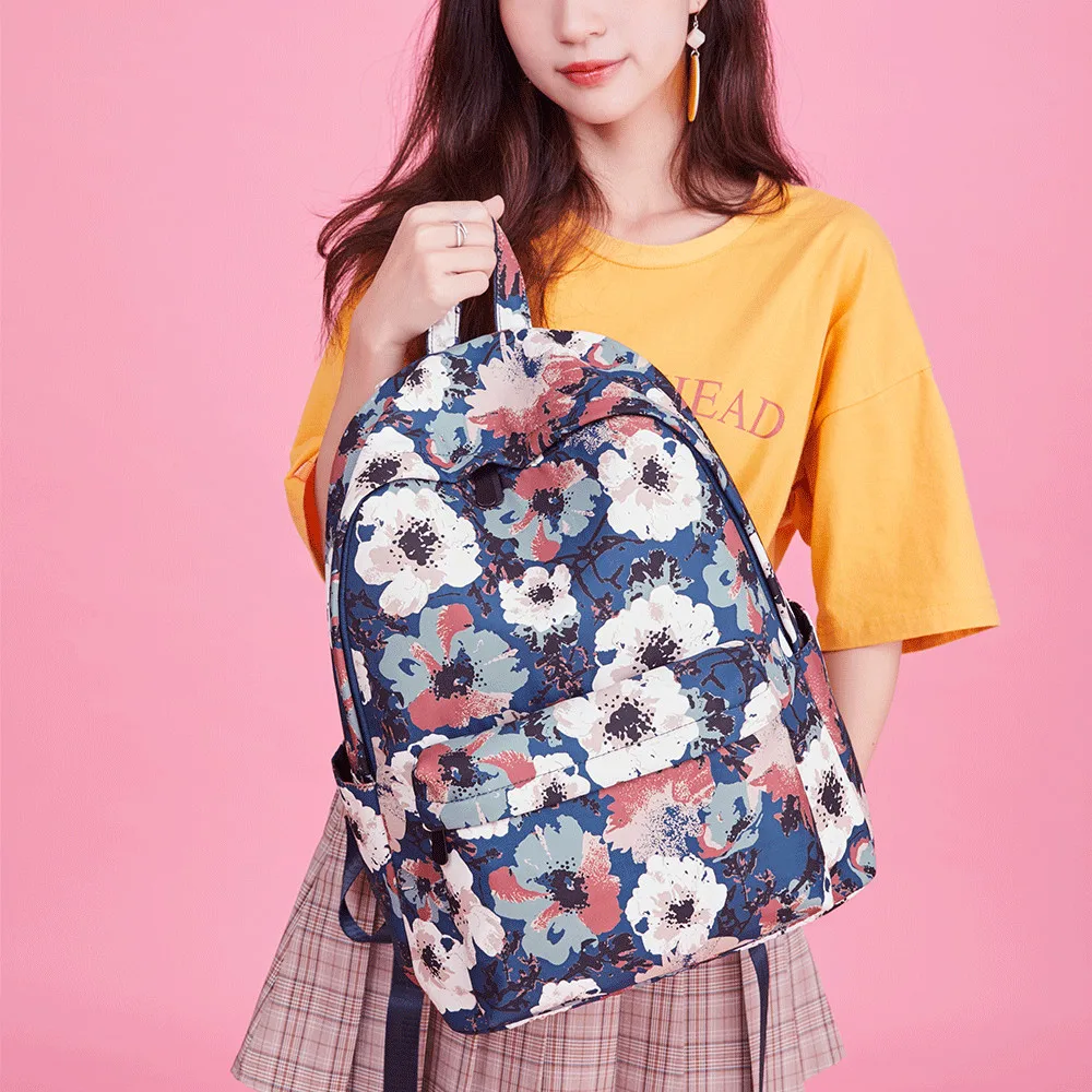 Женский рюкзак с цветочным принтом, Синий Водонепроницаемый Школьный рюкзак из полиэстера для студенток и подростков, дорожный рюкзак