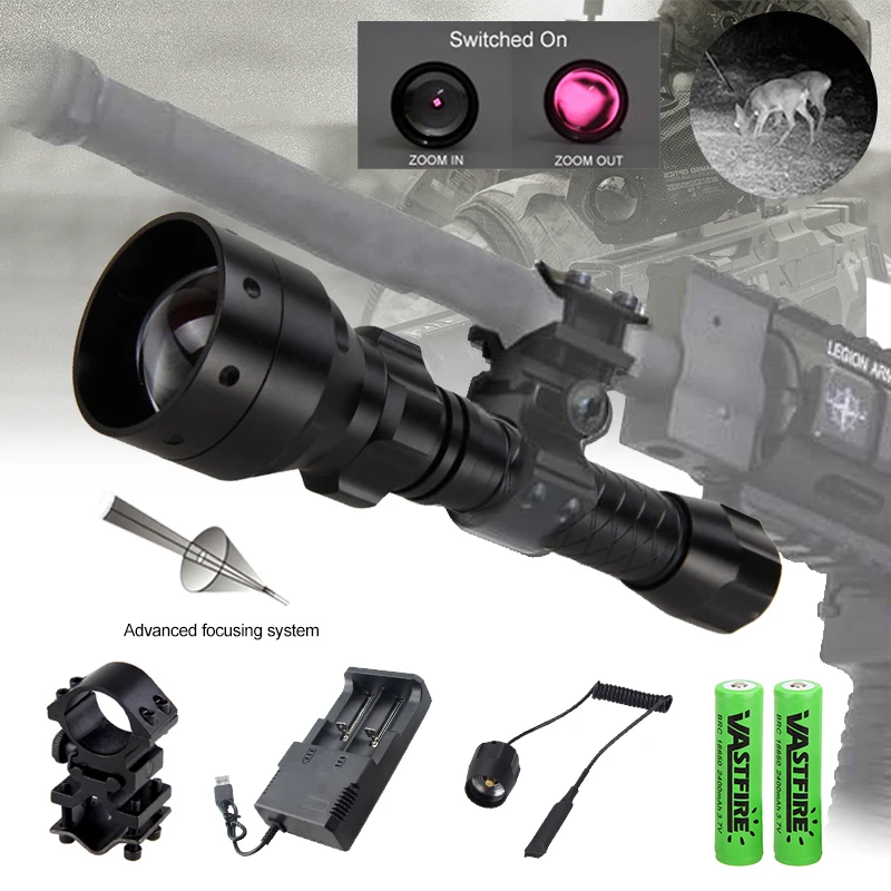 VASTFIRE T50-это не обычный светодиодный фонарик с белым светом для общего освещения. Используя инфракрасный светильник, черный 850nm светодиодный излучатель, VASTFIRE T50 излучает Невидимый, но высокомощный ИК-светильник с более чем одним Ваттом оптической мощности. Пожалуйста, остерегайтесь, что: вы не увидите ни один светильник с вашими голыми глазами (только маленький и слабый красный свет на светодиодный, чтобы показать вам, что фонарь включен).