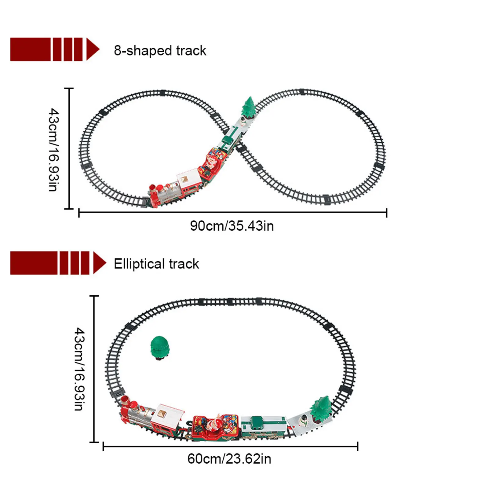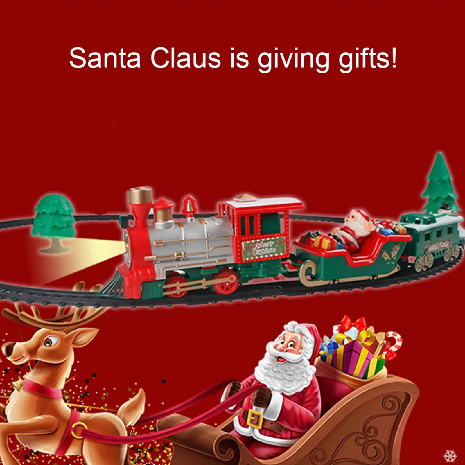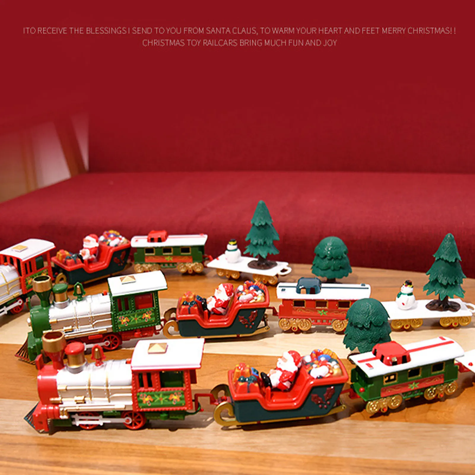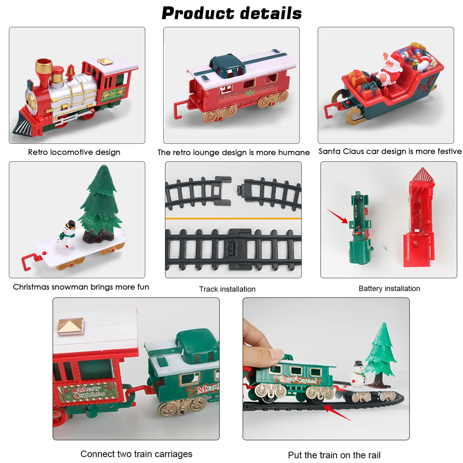 2. Изготовленная игрушка поезда: этот Рождественский набор поездов имеет красивую мелодию, крутые огни, когда поезд движется, сопровождается огнями, имитацией звуков поезда, с фарами, реалистичные звуки и другие эффекты. Слушайте реалистичные звуки рогов локомотива и наслаждайтесь прослушиванием знаменитостей, мы желаем вам счастливого Рождества и мелодии колокольчиков.