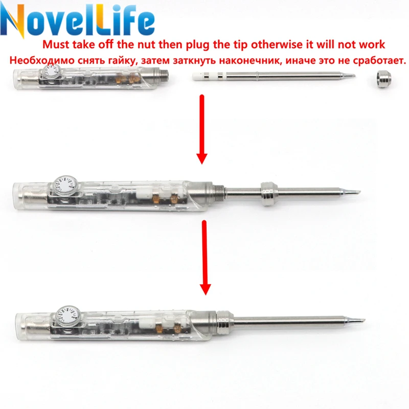 3) 220-400 градусов Цельсия Регулируемый температурный диапазон с маркированной ручкой для регулирования простоты в эксплуатации4) DC5.5 * 2,5 Разъем питания с DC12V-24V входом низкого напряжения может питаться от литиевой батареи или ноутбука питания напрямую, безопасно и просто в использовании5) компактная форма ручки с длиной 177 мм и возможностью установки наконечника удобно носить с собой и использовать