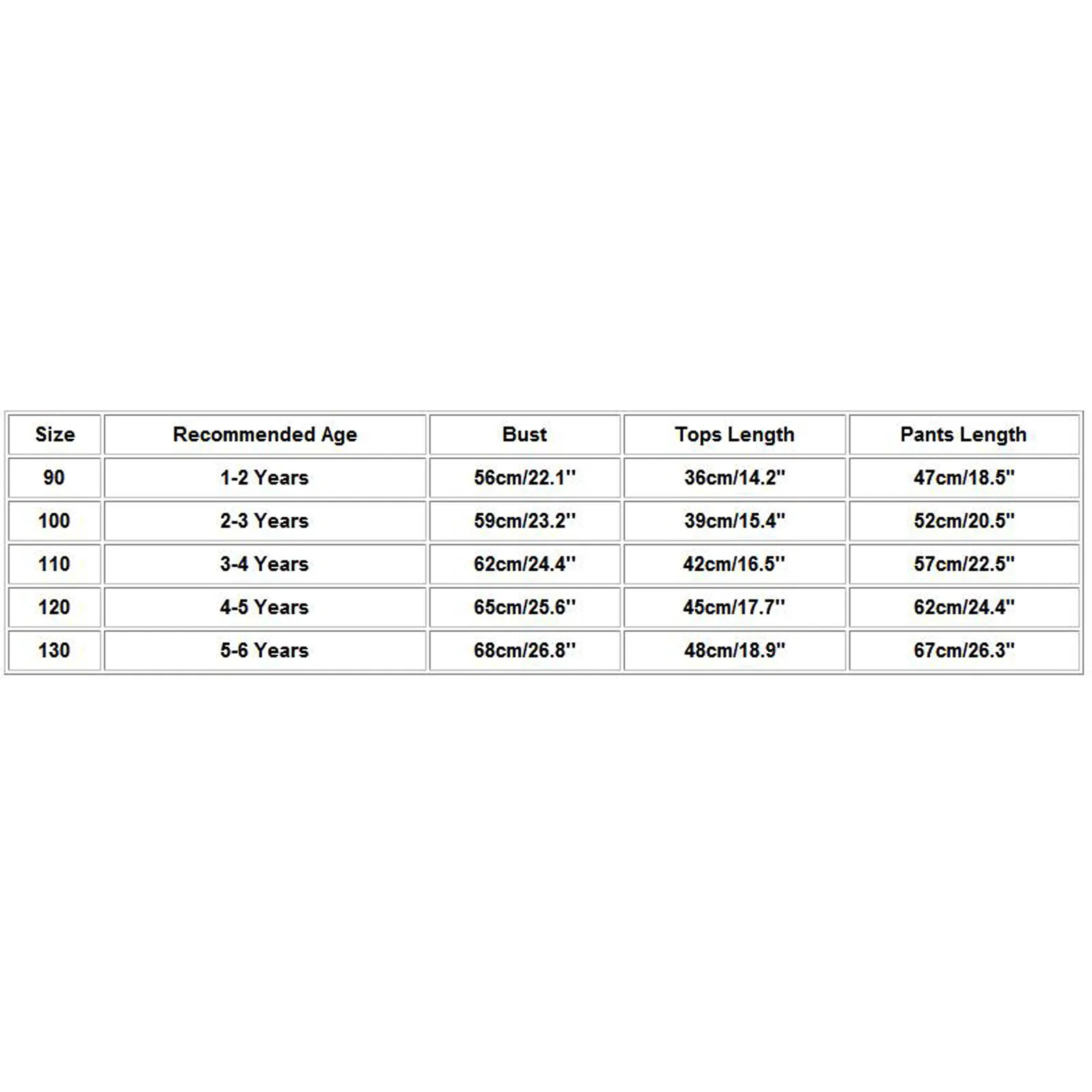 | Размеры | Рекомендуемый возраст | Бюст | Длина топа | Длина брюк |