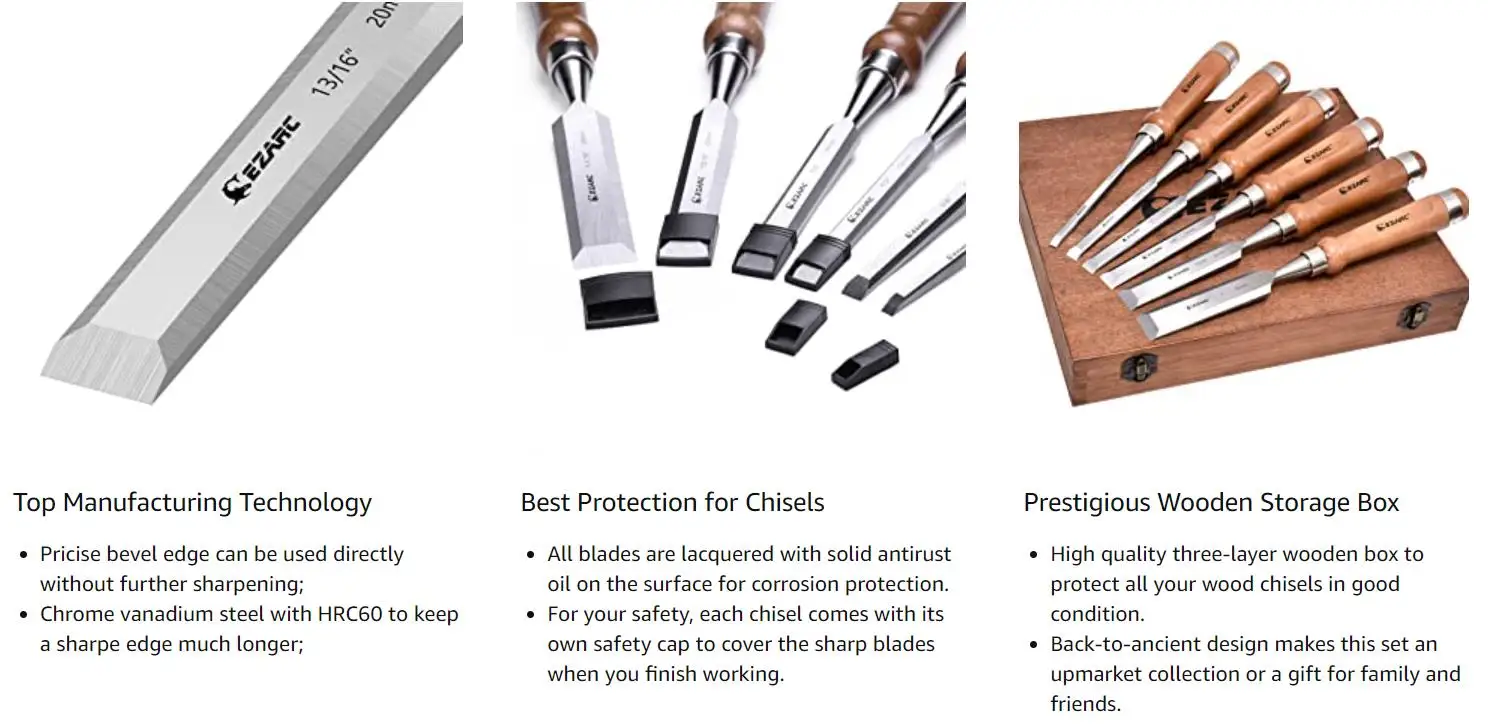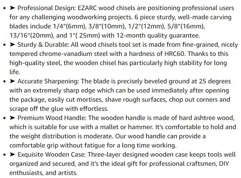Деревянная долото является незаменимым элементом Вашего набора инструментов, острое деревянное Долото может отрезать мортсы, брить шероховатые поверхности, нарезать углы и легко отклеивать клей. Острота необходима с деревянными долото, EZARC 6pc долото для дерева набор точно разработан для ваших требований к деревообработке.