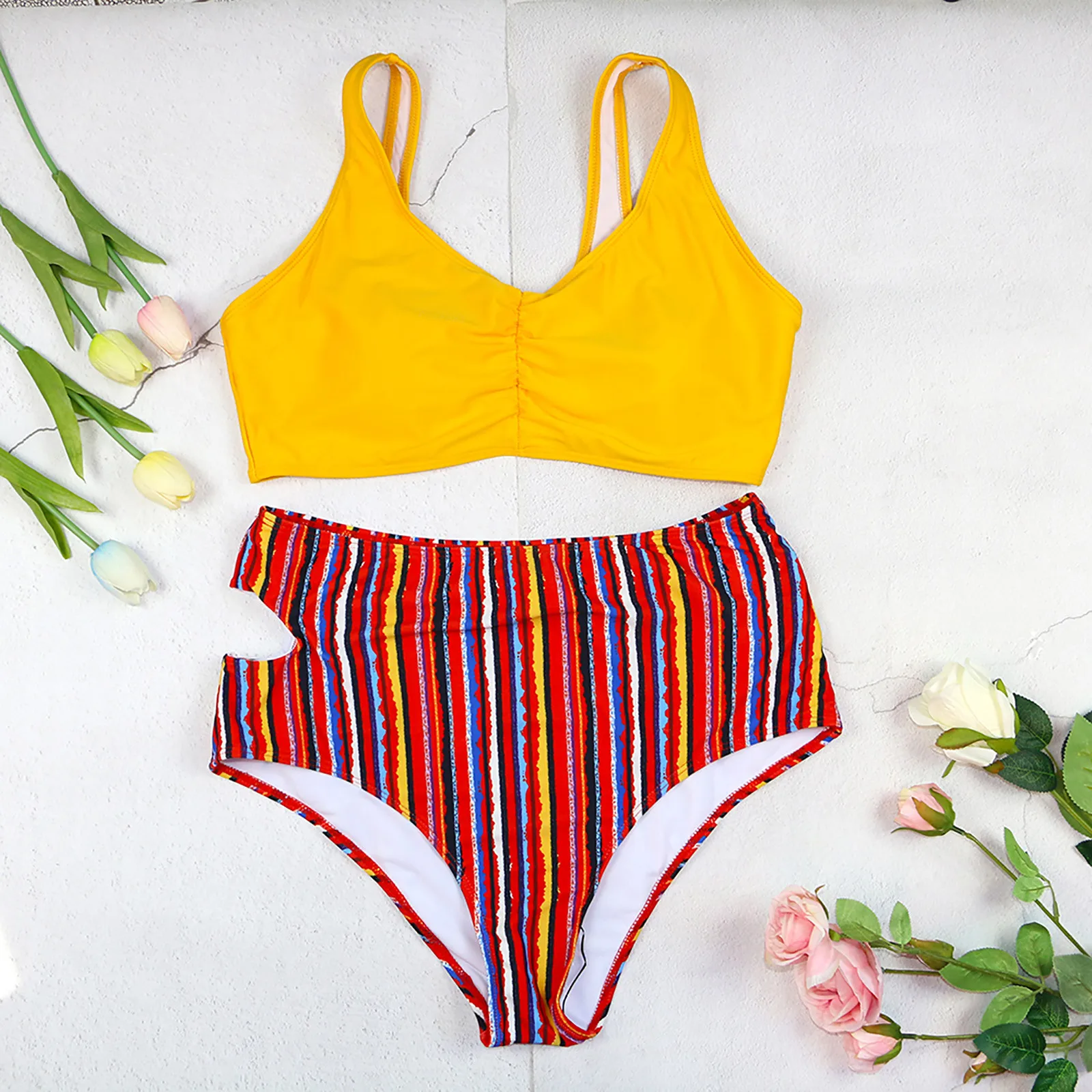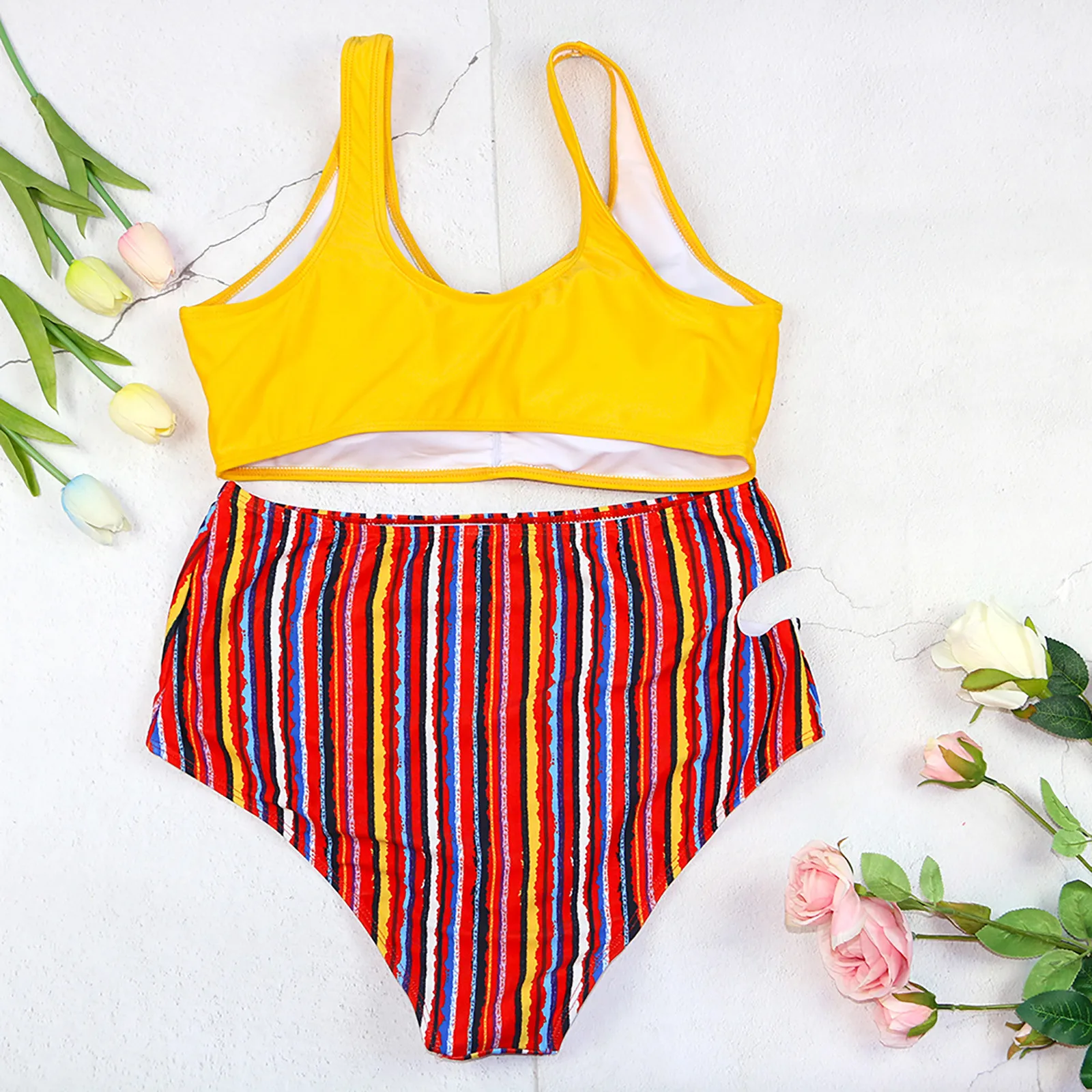 Женские Купальники, сексуальный купальник размера плюс, Модный Полосатый раздельный купальник на бретельках, летний Повседневный купальник