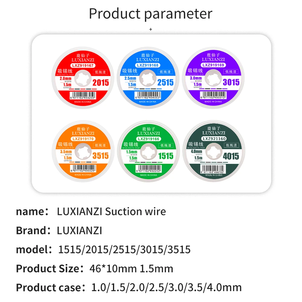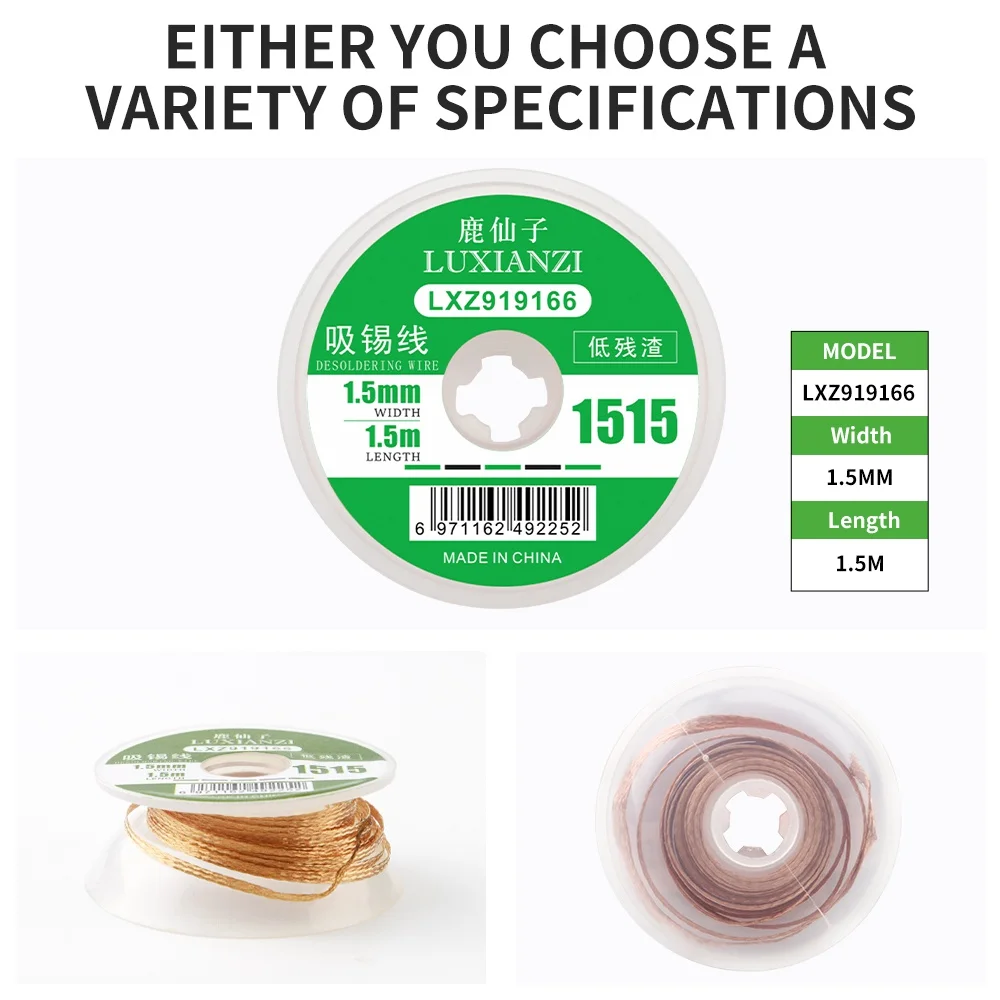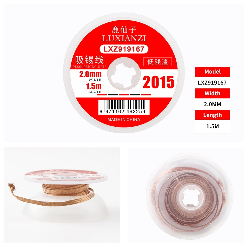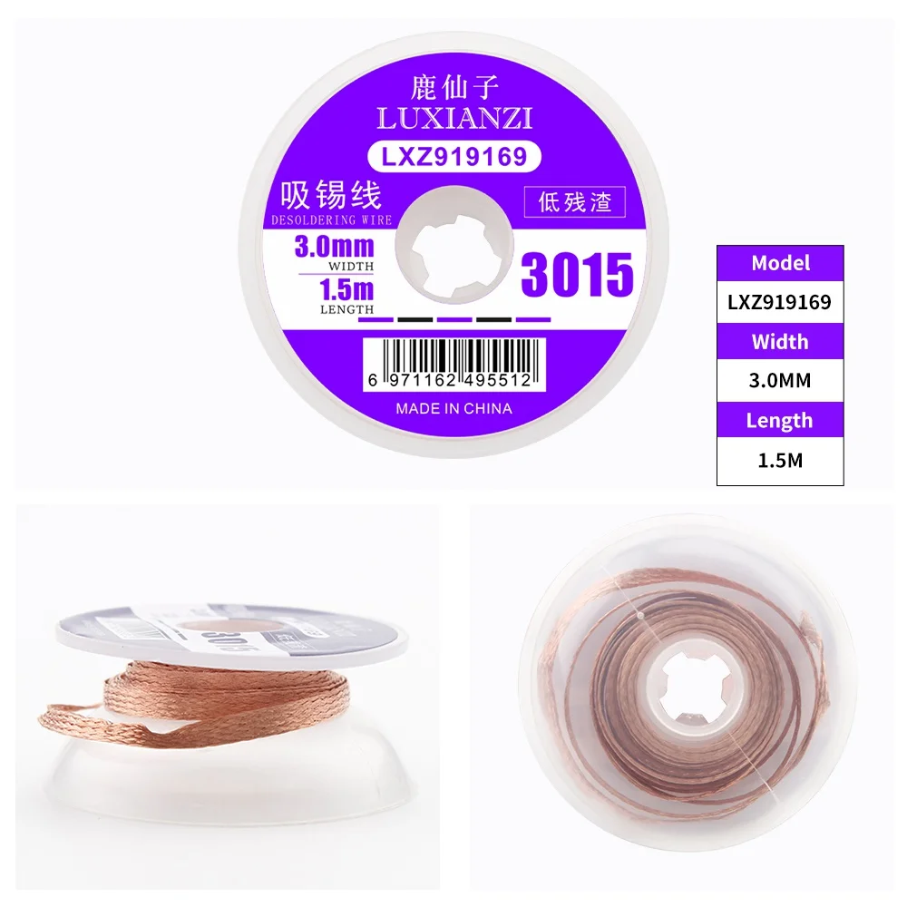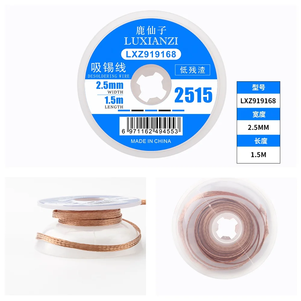 Оплетка для пайки и распайки LUXIANZI, длина 1/1, 5/2/2, 5/3/3, 5 мм, ширина 1,5 м
