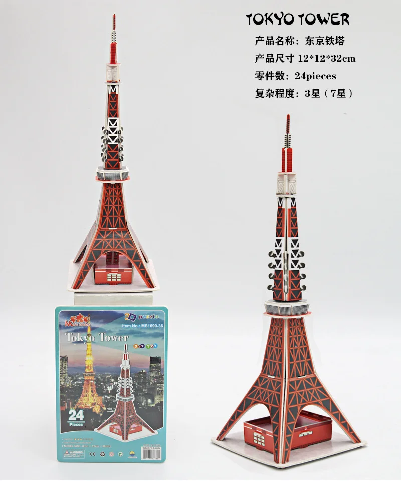 3D Бумага головоломка слово знаменитые здания башня мост головоломки собранная модель ремесло DIY Развивающие игрушки для детей Подарки для взрослых