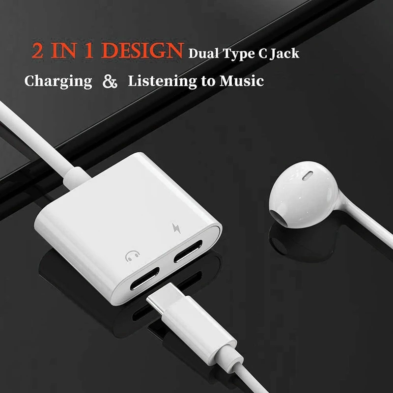 Цвет: белый-двойной адаптер для наушников USB C