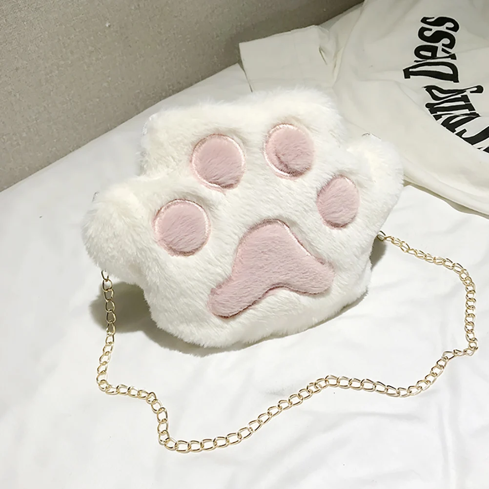 1. Мягкий плюшевый материал, приятный на ощупь, не выцветает.1 шт. милая плюшевая сумка через плечо с кошачьей лапой