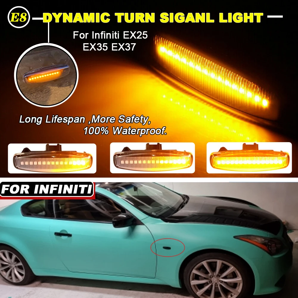 2 шт. для Infiniti EX25 EX35 EX37 FX30d FX35 FX37 FX50 G25 G35 G37 JX35 M25 M35 M37 светодиодный динамический боковой маркер указатели поворота