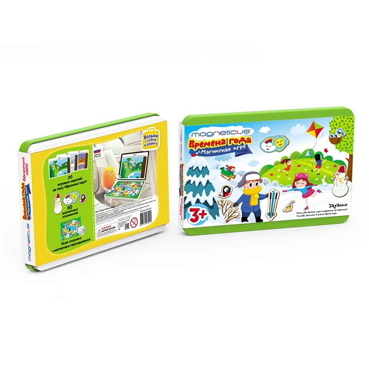 | Комплектация | 60 магнитных элементов "времена года" 20 заданий на тему "времена года" 1 игра-ходилка + магнитные переодевания |