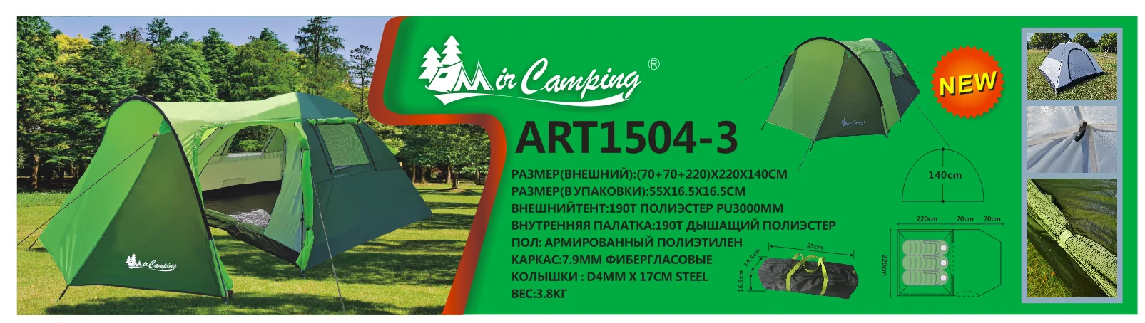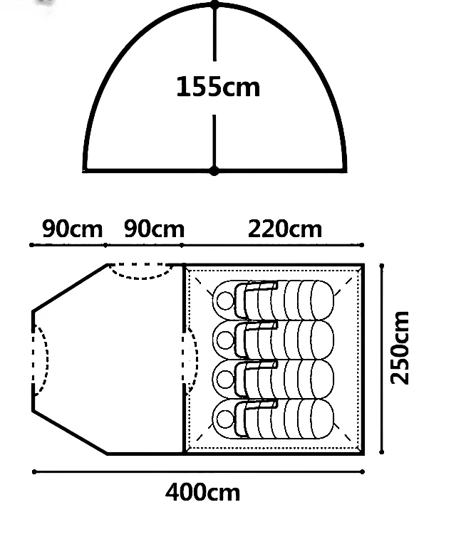 Внутреняя палатка:190Т ДЫШАЩИЙ ПОЛИЭСТЕР