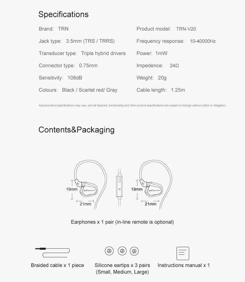 TRN V20 DD BA гибридные наушники HIFI DJ монитор для бега спортивные наушники с заушником 2PIN кабель TRN V80/V30/BT20/X6