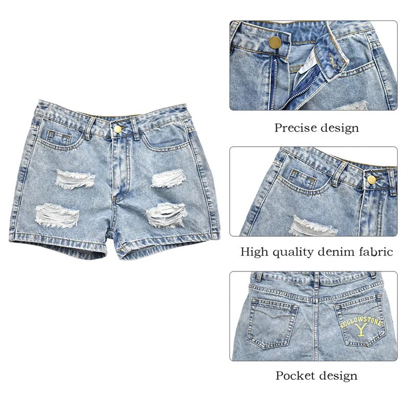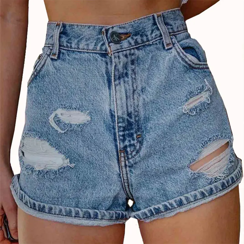 Джинсовые шорты женские с высокой талией рваные летние S-2XL | Женская одежда