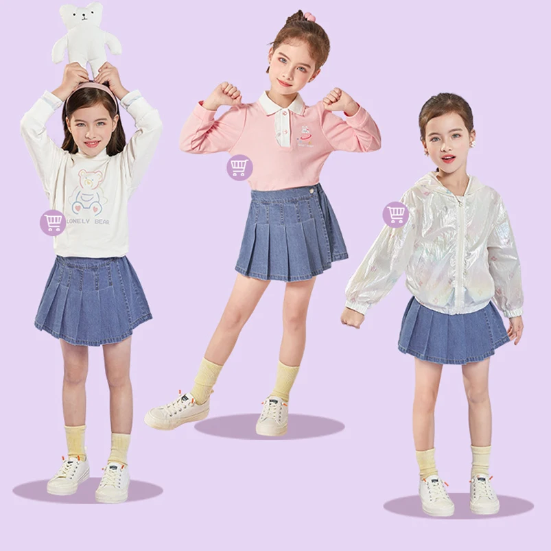 Girls Pleated Skirt Summer Casual School Girls Uniform Clothing Cozy Cowboy Kids Skirt Shorts Children Uniform Costumes 2-12Yrs
