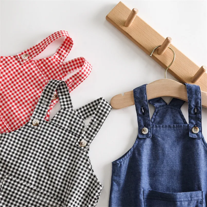 Летний комбинезон для новорожденных, винтажная клетчатая детская одежда, комбинезоны для мальчиков, джинсовый комбинезон без рукавов для маленьких мальчиков, детские комбинезоны