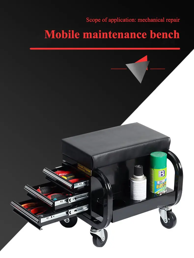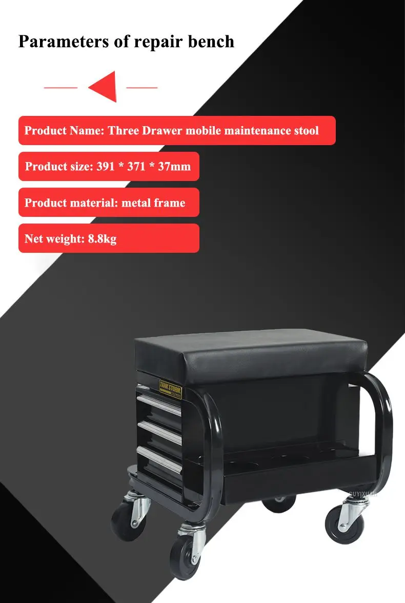 Название продукта: мобильный табурет с тремя ящиками Размер изделия: 391 × 371 × 371 мм Материал изделия: металлическая рама Вес нетто: 8,8 кг Применимые места: Авто магазин красоты/4S магазин/дом