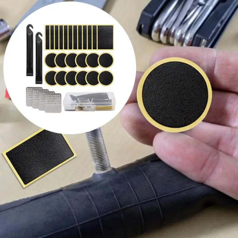1. Посылка: вы получите 30 комплектов для ремонта велосипедных шин, включая 12 круглых накладок на велосипедные шины, 12 прямоугольных накладок на велосипедные шины, 2 рычага для шин и 4 металлических файла. Комплекта достаточно для того, чтобы вы применили и заменили.