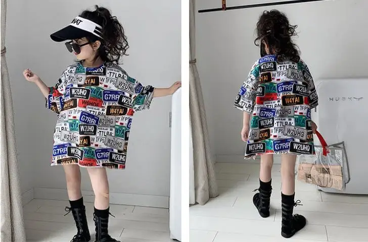 Подходящий Пол: ткань для девочек/Материал: другое/полиэстер (полиэфирное волокно) содержание ингредиентов: 91% (включительно)-95% (включительно) рукав: короткий рукав популярные элементы: рисунок с принтом: другой