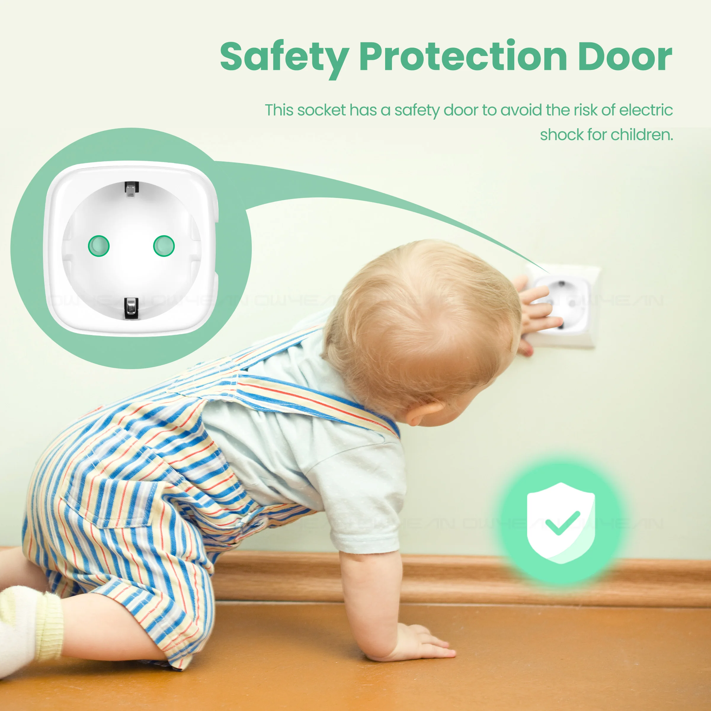 Эта розетка имеет защитную дверь, чтобы избежать риска поражения электрическим током для детей.