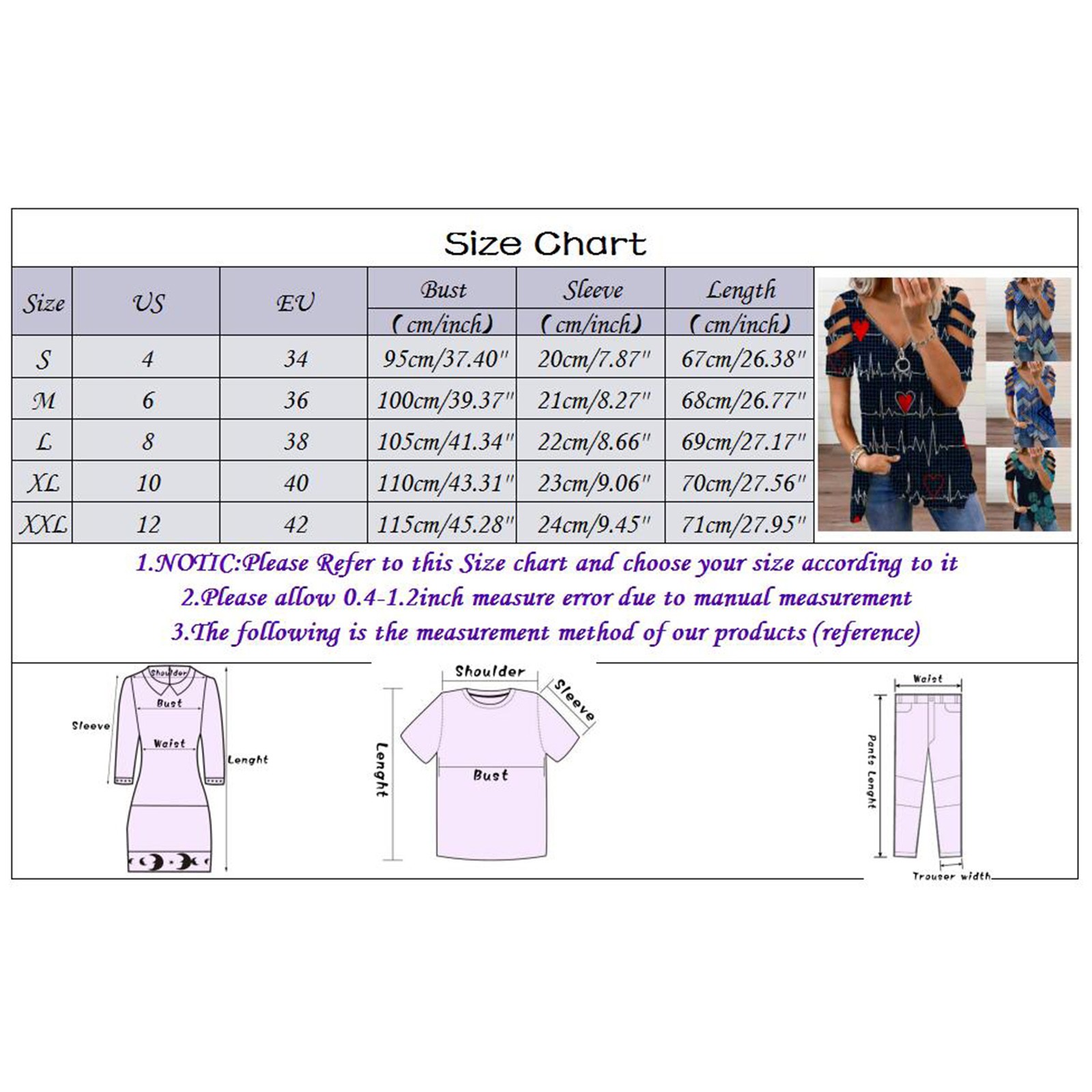 | Size | US | EU | Bust | Sleeve | Length |