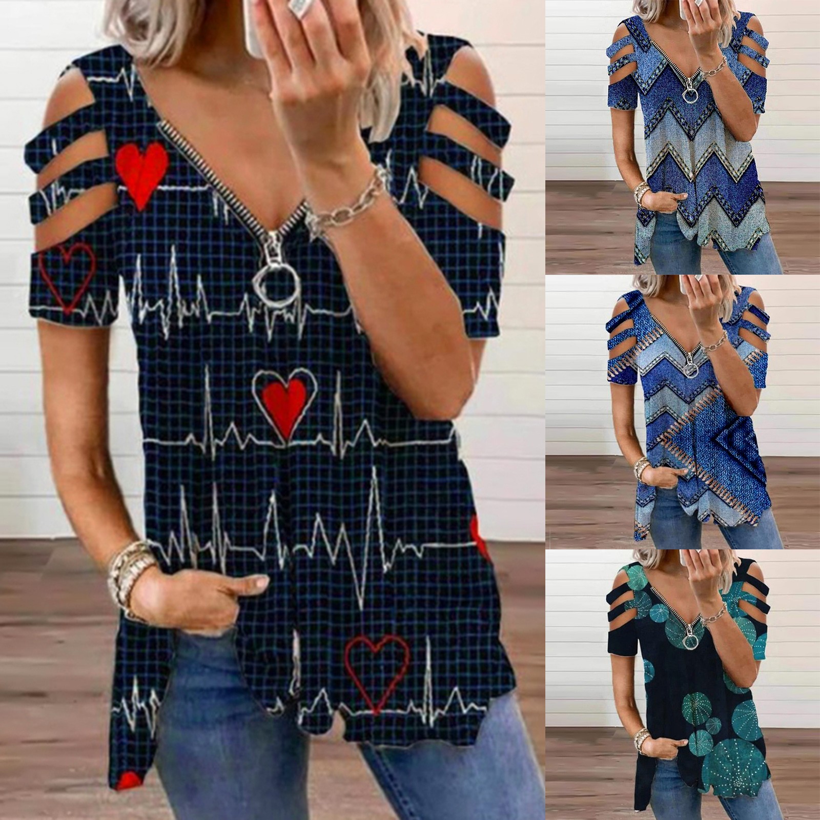 1.Features: Casual Tops,Printed,Casual T-shirt,V-Neck,Fashion Tee ,Pullover T-Shirt ,Casual tops, Casual Wear,Stylish and fashion design,Summer casual Blouse.