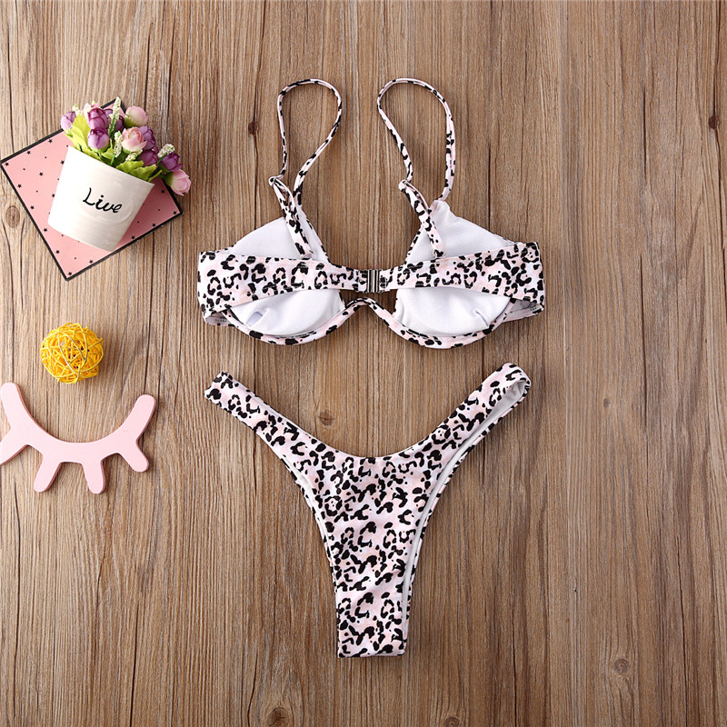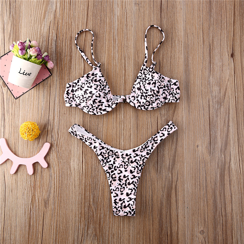 Женский купальник-бикини с леопардовым принтом, пуш-ап, 2021, v-образный вырез, бюстгальтер с высокой талией, бандажный купальник, пляжная одежда, монокини