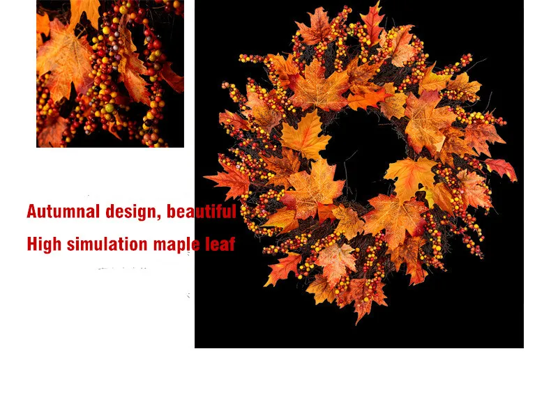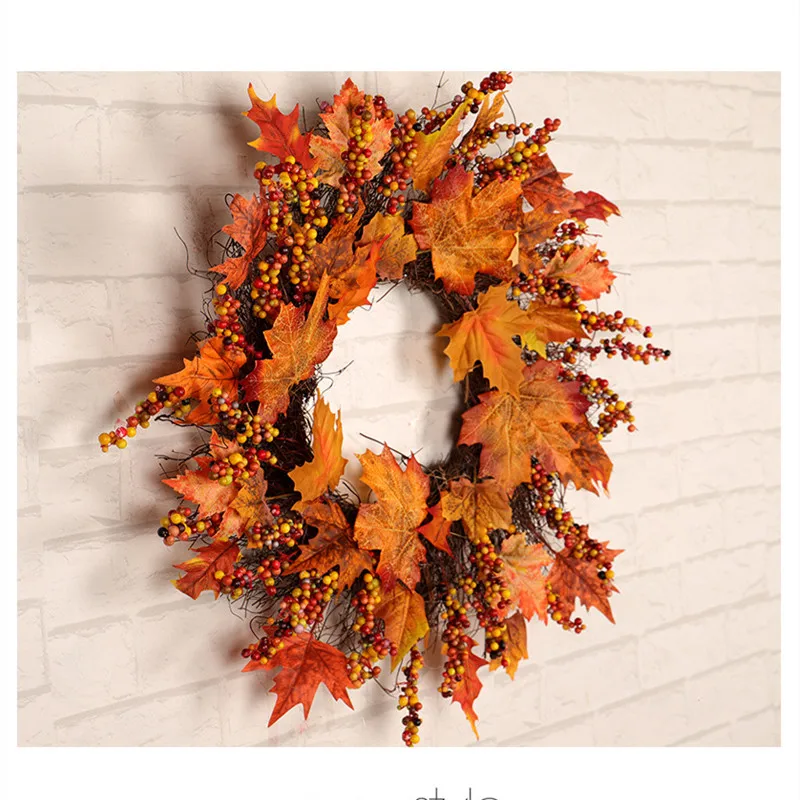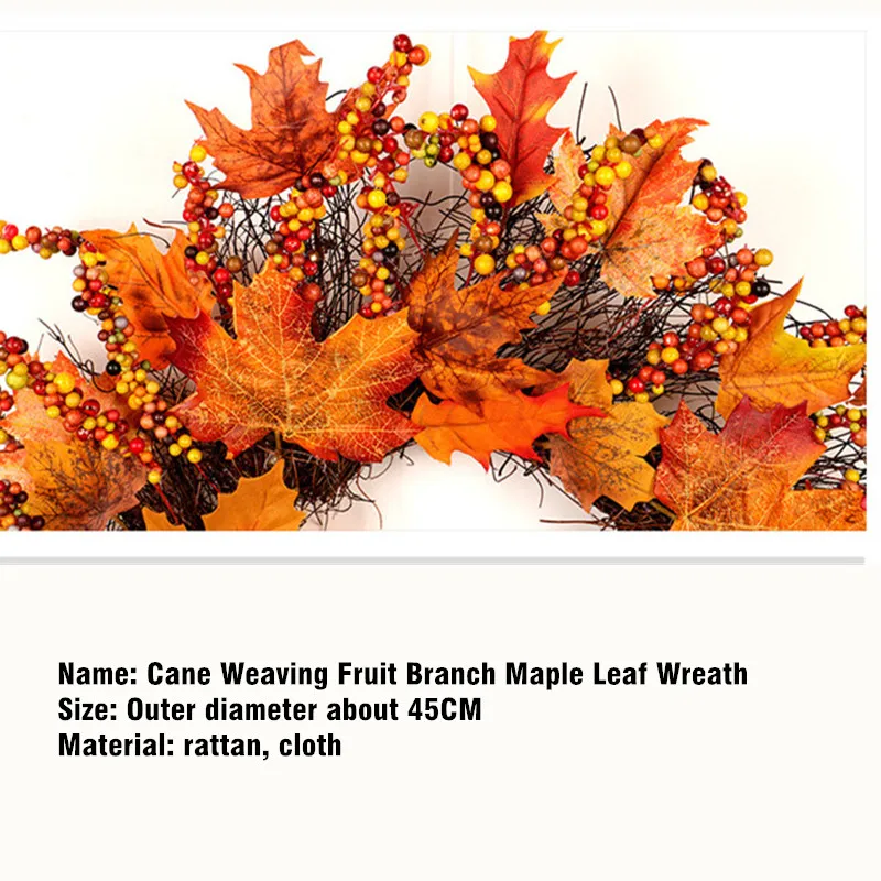 Рождественский венок, Плетеный венок из ротанга, венок из кленового листа, 45 см, Настенный декор для двери, украшение для отеля, украшение для дома, День благодарения
