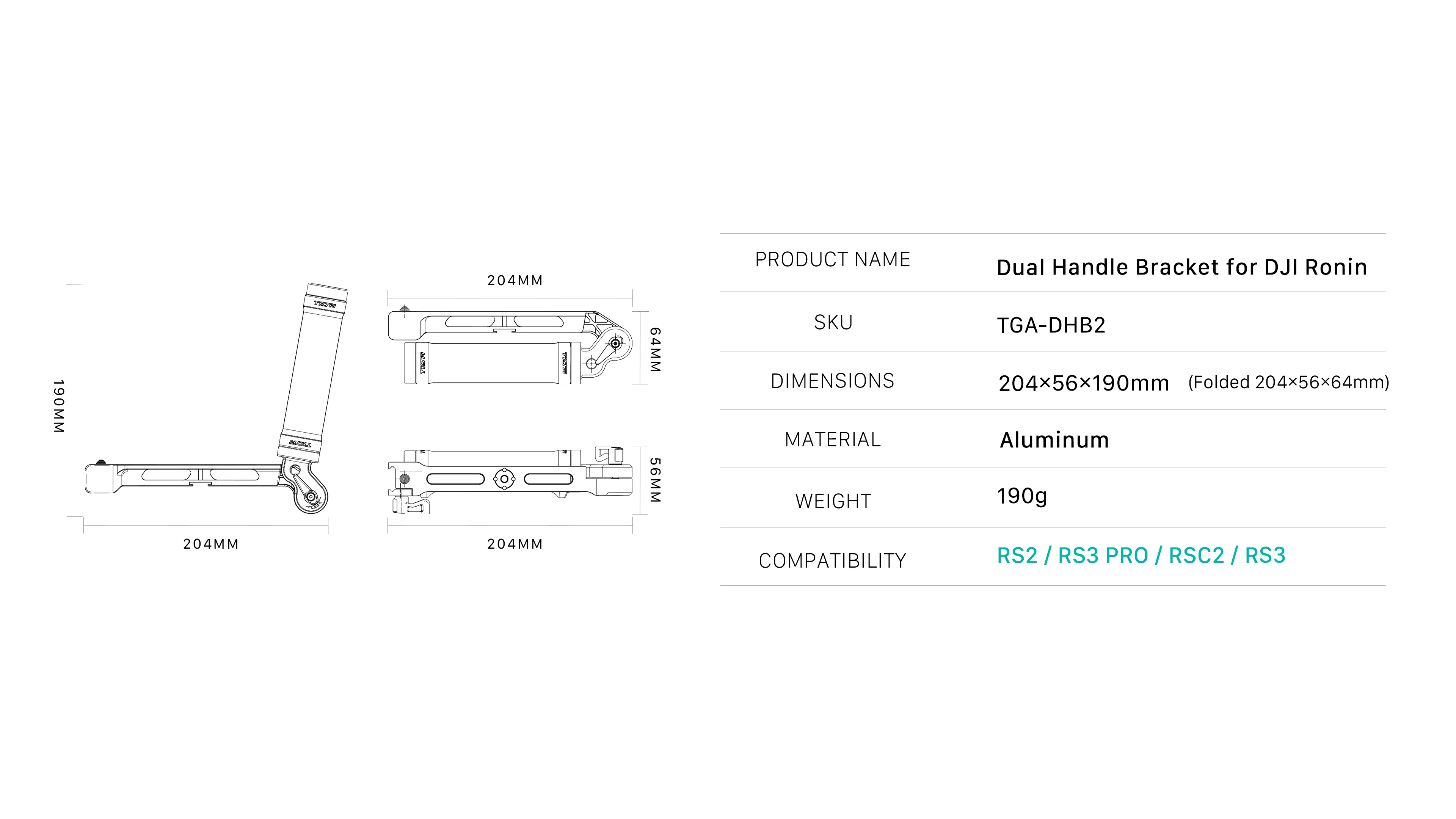 Кронштейн с двумя ручками для DJI Ronin подключается к креплению NATO вашего DJI RS2, RSC2, RS3 или RS3 Pro, позволяет управлять карданный шарнир через две точки контакта для большего контроля и более гладкой производительности.
