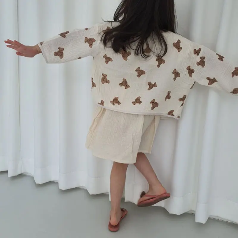 Хлопковый льняной кардиган для маленьких мальчиков и девочек ↓ ⑤