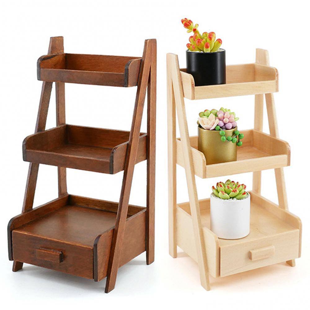 Миниатюрный Кукольный домик 1:12, 3D деревянная мебель, Мини Милая мебель, трехслойная подставка для цветов, модель полки, игрушка, микро-пейзаж