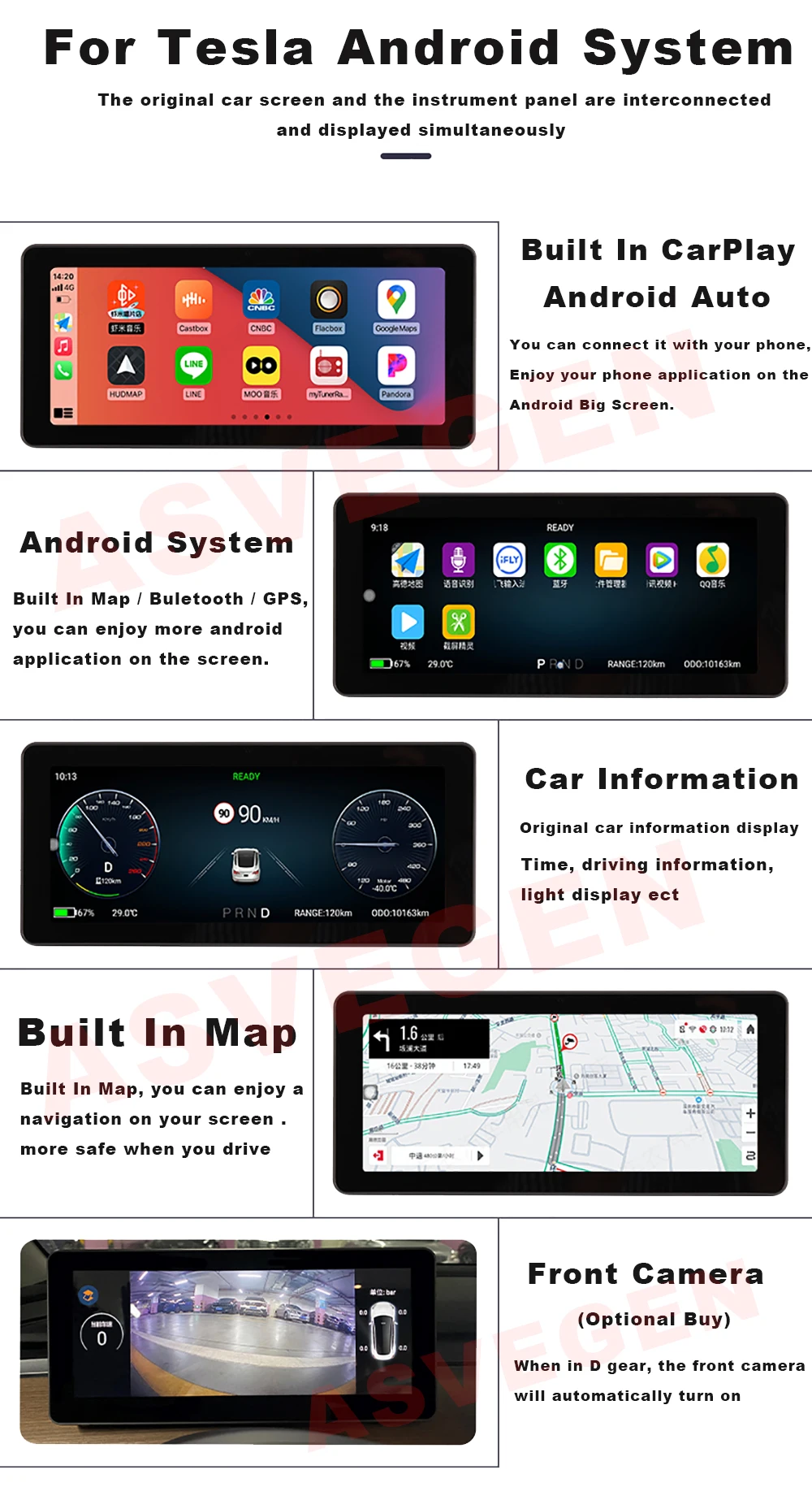 8,8 дюймов Android 9,0 Приборная панель автомобиля Приборная панель для Tesla с 2 + 32G встроенный CarPlay