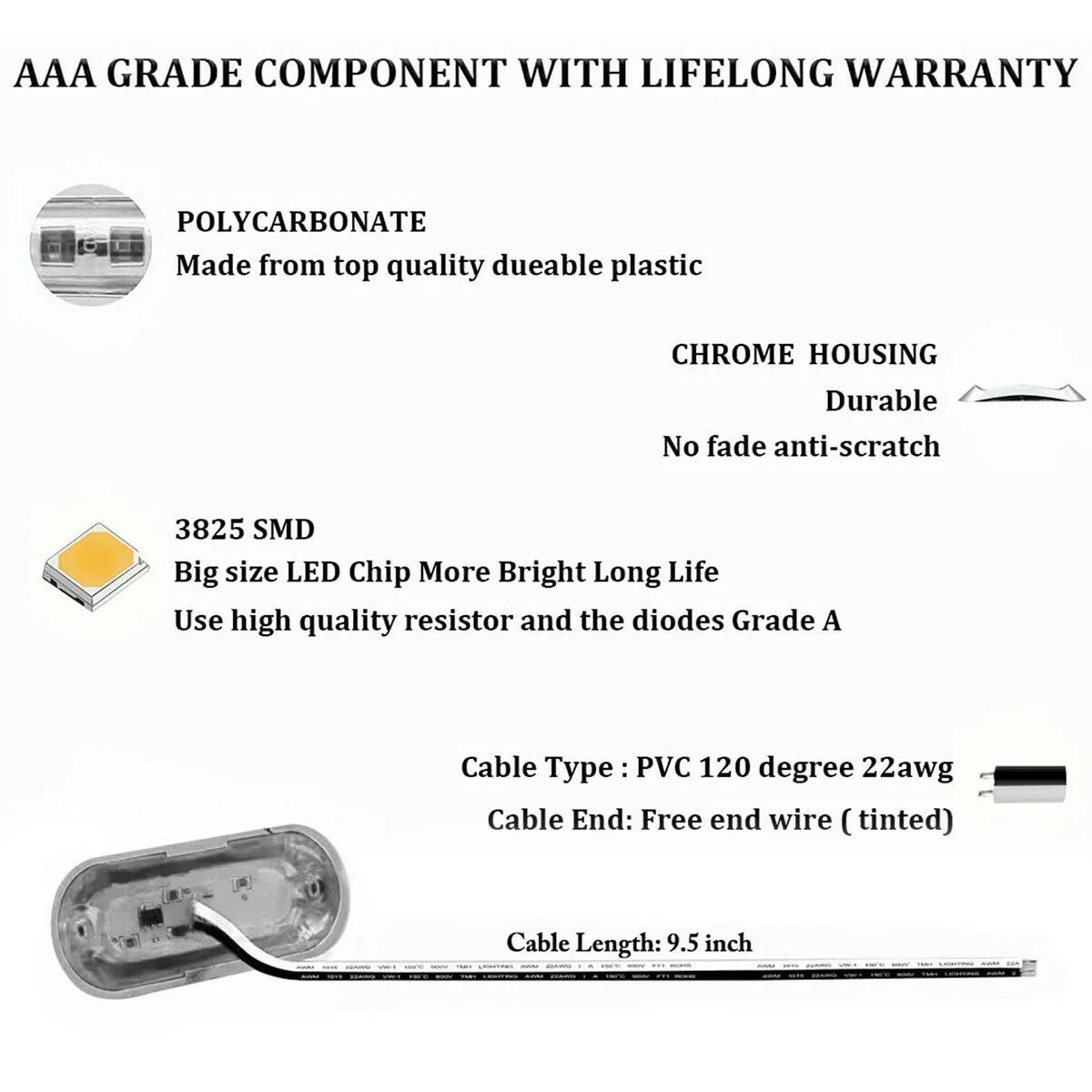 * 【Высокое Качество 】 встроенный 3825 SMD светодиодный лампы, ярче, чем обычные лампы. Изготовлен из прочного поликарбоната и хромового ободка. 3,7 "герметичный водонепроницаемый освещение салона, может работать при любой агрессивной среды.