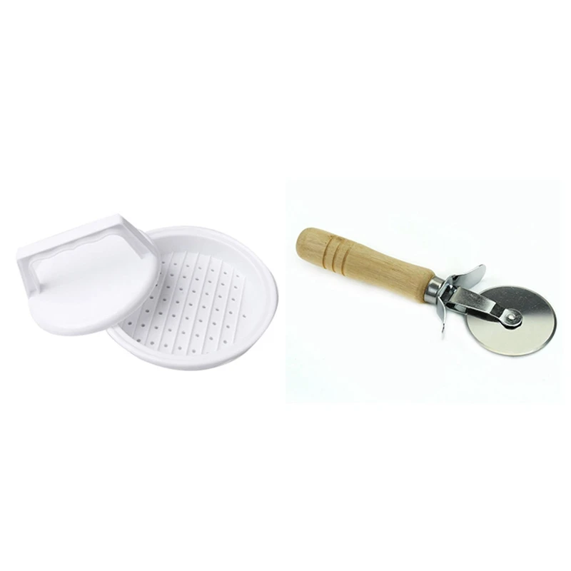 1 шт., нержавеющая сталь, деревянная ручка, резак для пиццы и 1 шт., пресс для бургера, машина для приготовления котлеты для гамбургера, набор для бургера