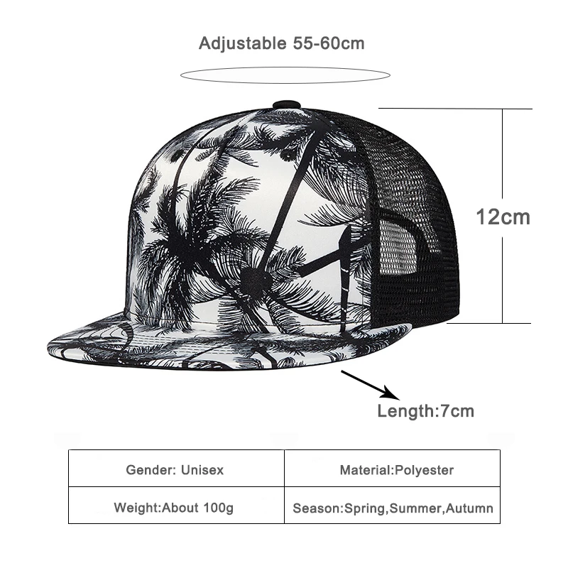 Повседневная летняя кепка с плоским козырьком для водителя грузовика, Мужская и Женская бейсбольная Кепка из сетчатого материала с принтом кокосовой пальмы, Солнцезащитная шляпа, головной убор для улицы, унисекс
