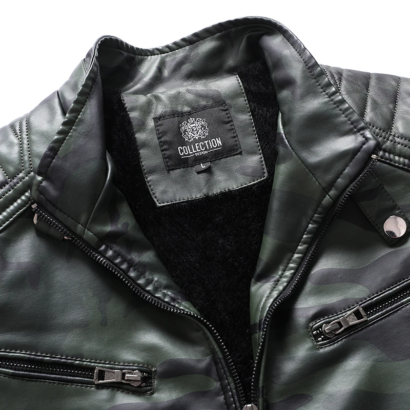 2021 Winter Black Leather Jacket Men Fur Lined Warm Motorcycle Jacket Slim Street Fashion BLack Biker Coat Pleated Design Zipper