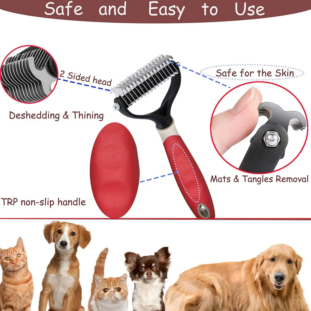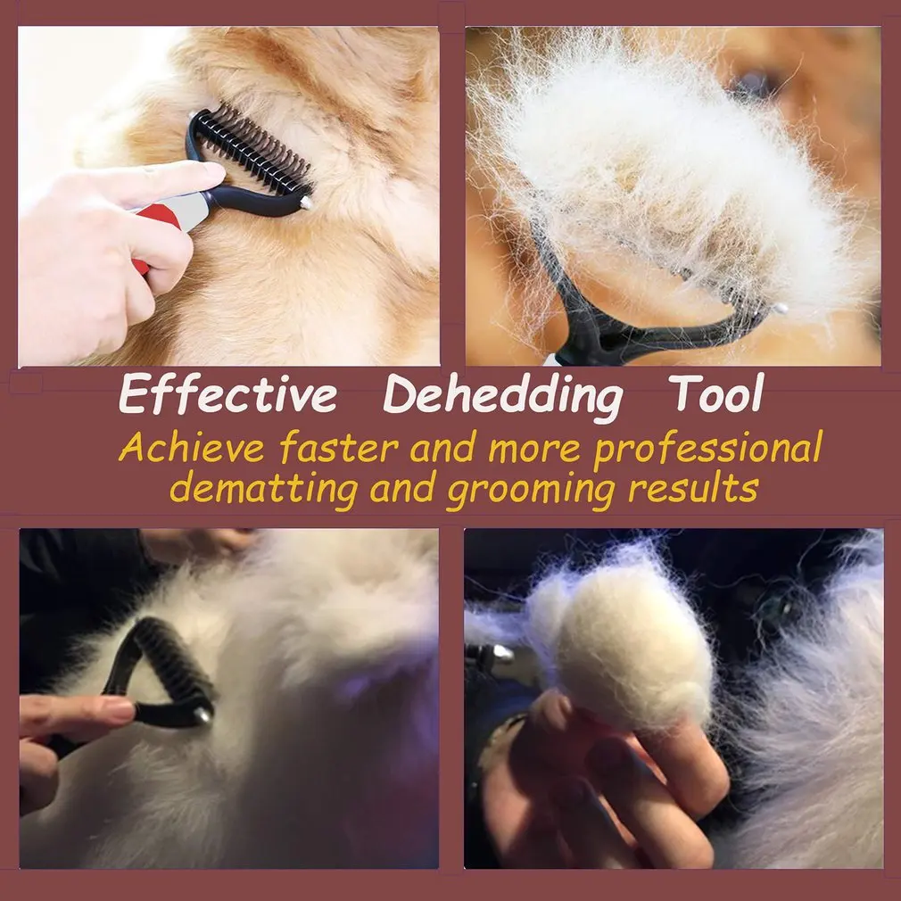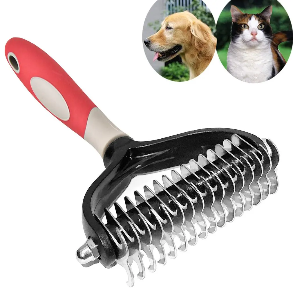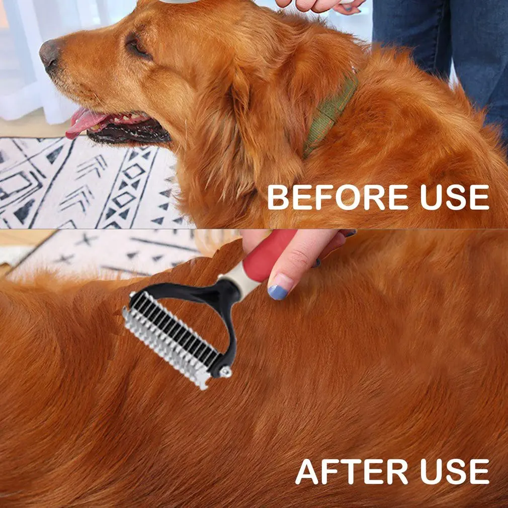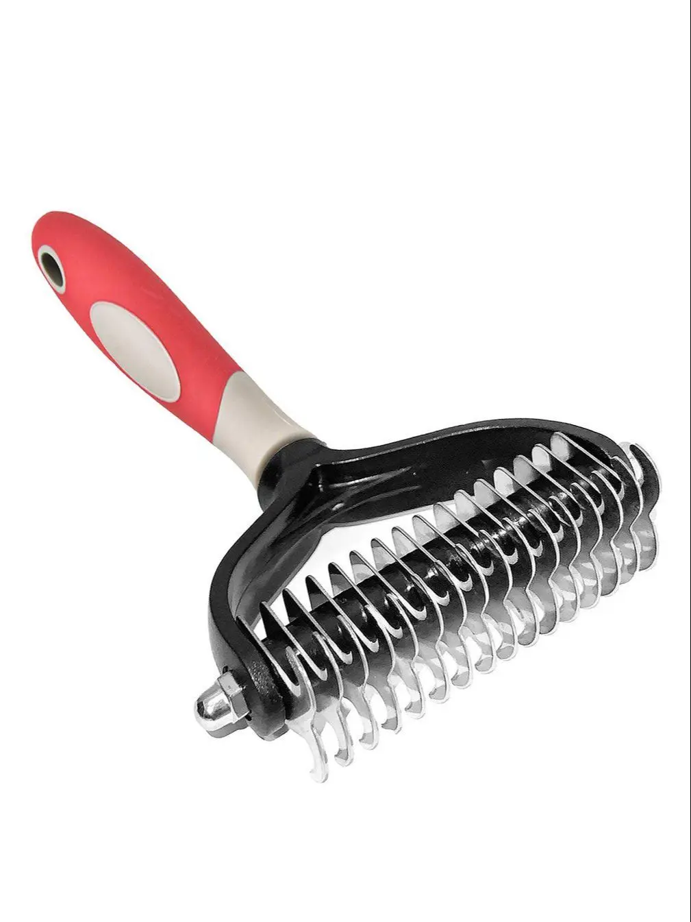 1. Конструкция с двумя головками: 2 стороны, 2 слоя, 1 инструмент! Используйте 9-зубчатую сторону этой щетки для собак и кошек для плавного удаления, а 17-зубчатую сторону для быстрого истончения и удаления.