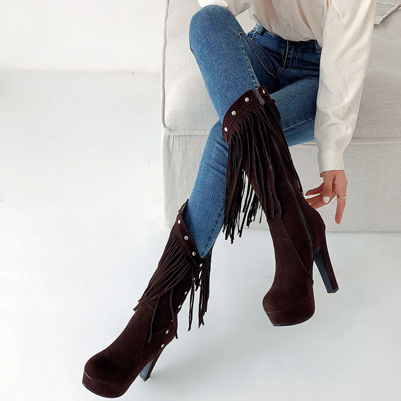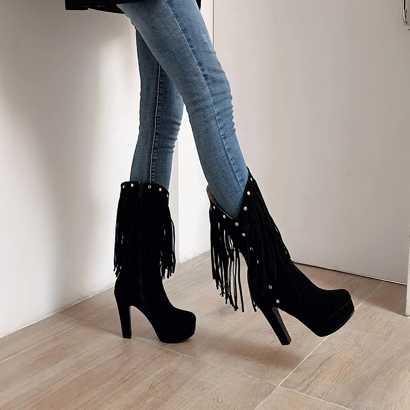 Модная кожаная обувь с высоким берцем и на высокой платформе Женские 2020 Новинка