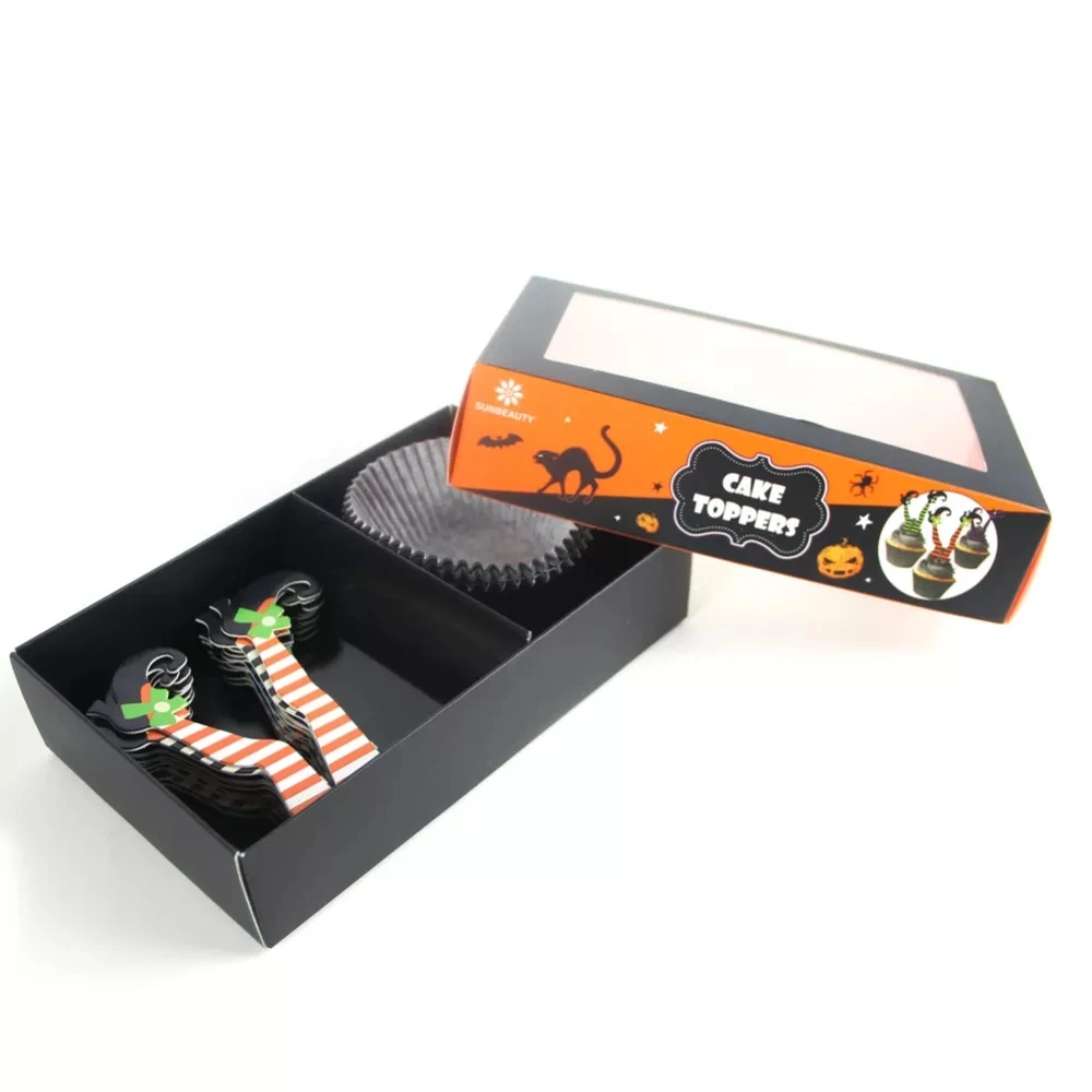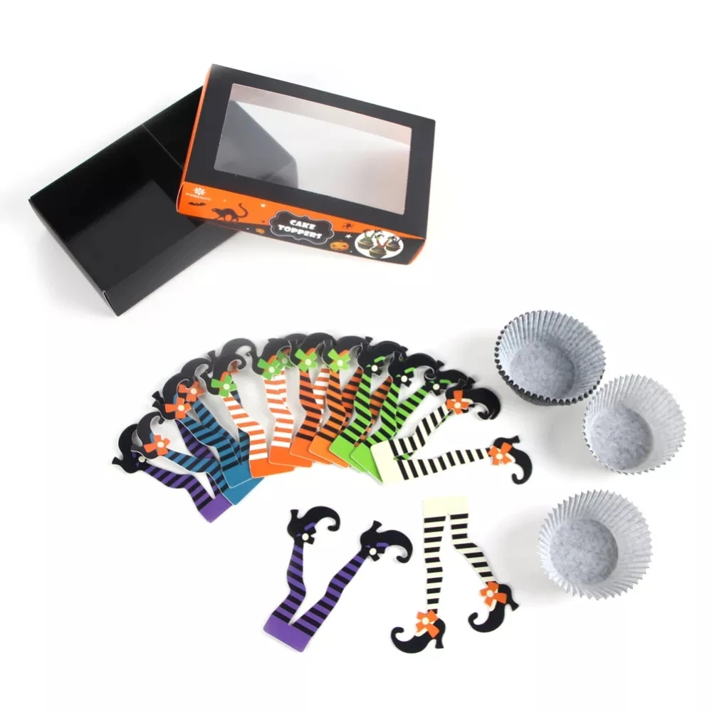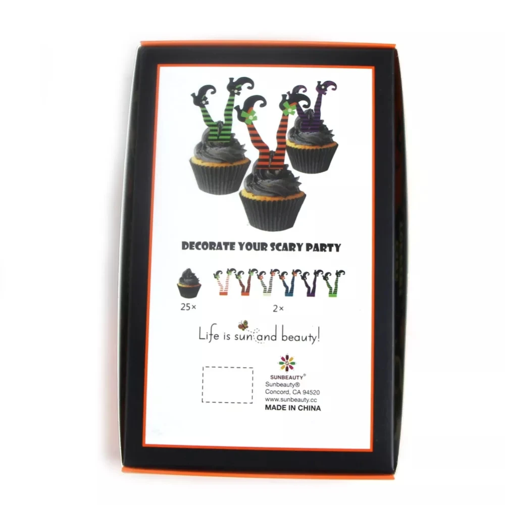include 12pcs cup toppers:2pcs white,2pcs orange,2pcs green,2pcs purple,2pcs blue,2pcs off-white and 25pcs cupcake wrappers.