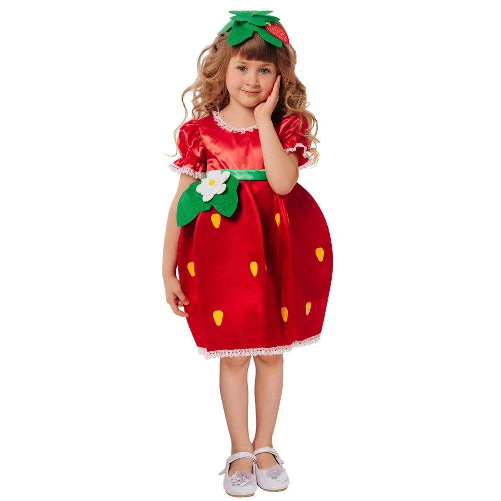 Костюм Клубнички для ребенка - "сочная" новинка в коллекции Веселая Полянка бренда Пуговка. Костюм ягоды клубники подойдет для тематического утренника или спектакля. Комплект состоит из платья и ободка.