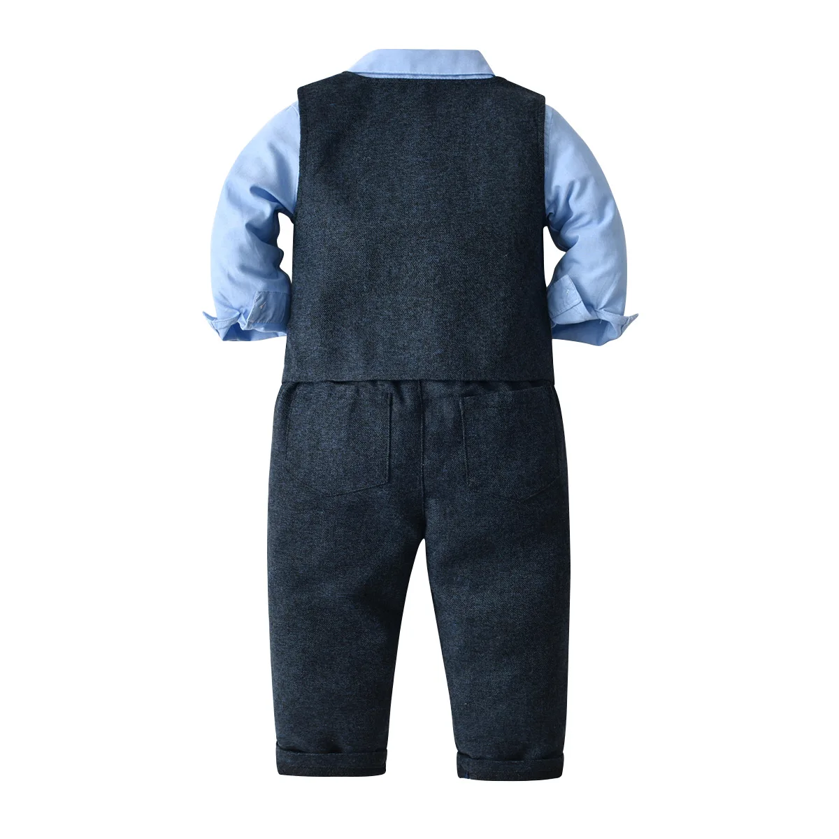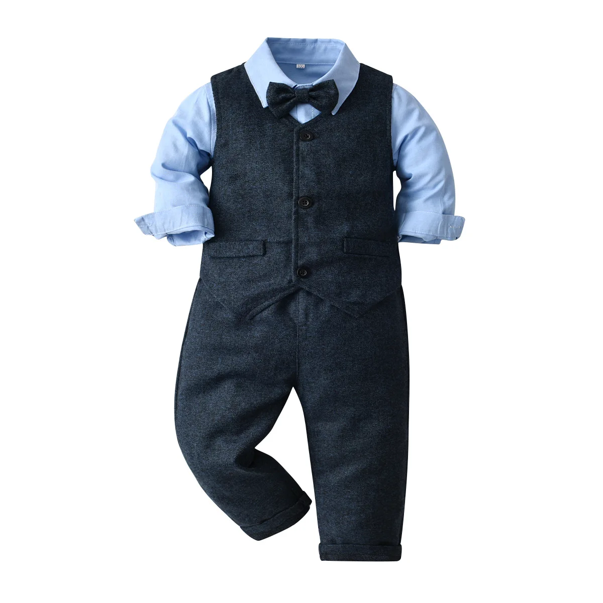 Костюм Джентльмена для маленьких мальчиков рубашка с длинными рукавами с галстуком-бабочкой, жилет, брюки комплект официальной детской одежды из 3 предметов, костюмы для свадебной вечеринки